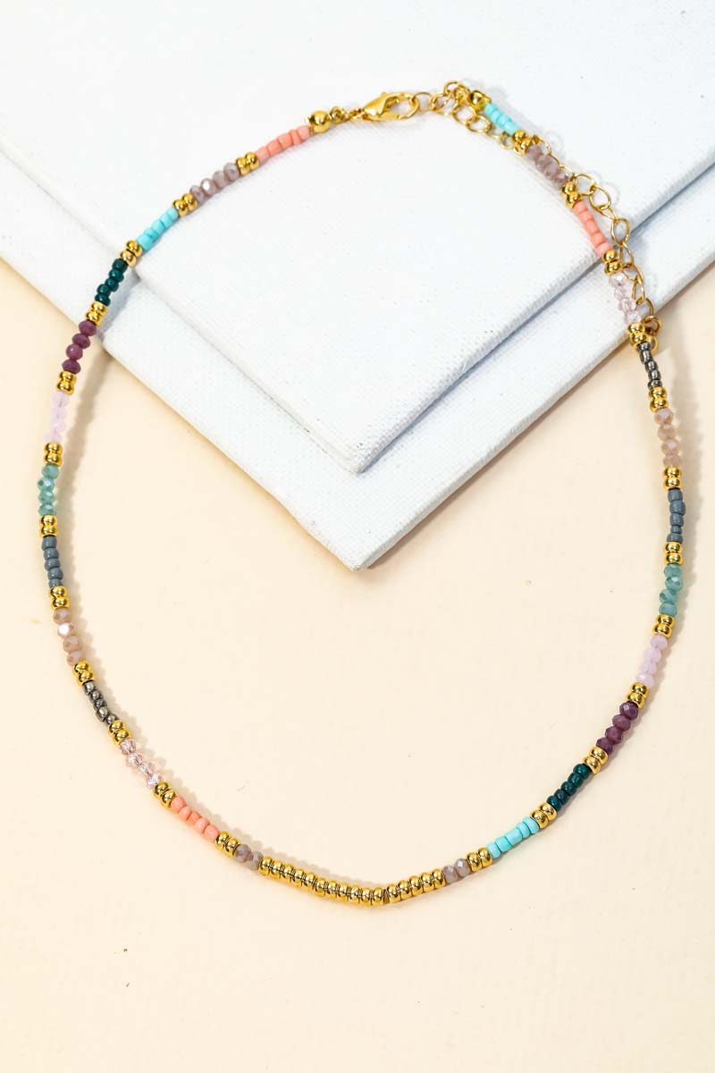 • An elegant charming unique must have trending necklace features a beautiful dainty seed beaded necklace design. Perfect for this season! Available in GDEMLT1, GDEMLT2, GDEMLT3 and GDPP.