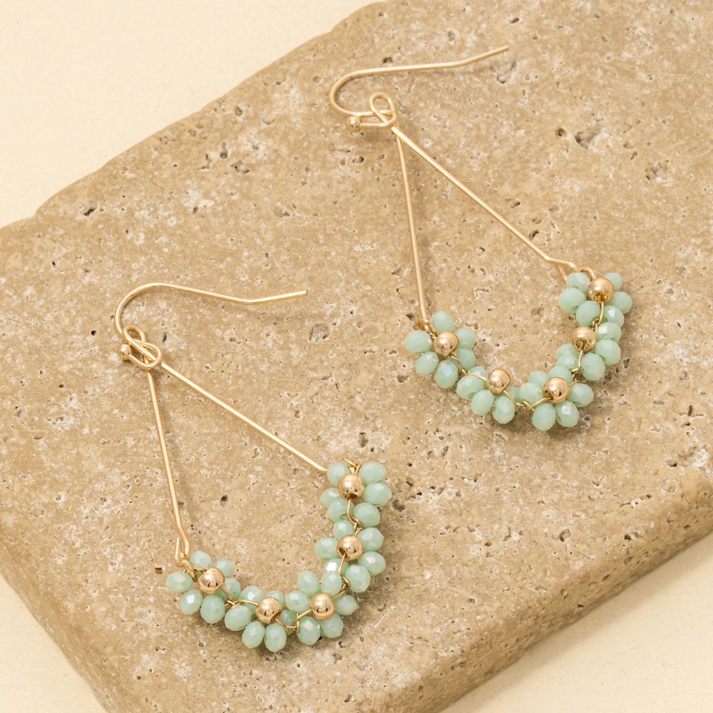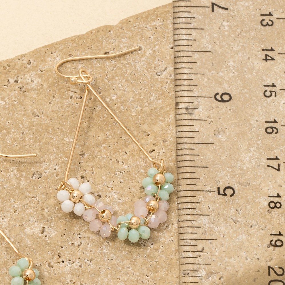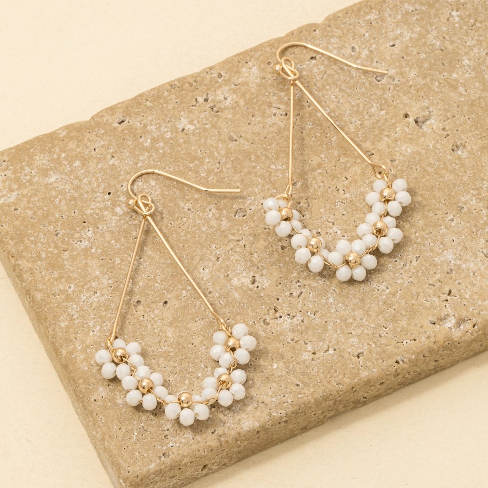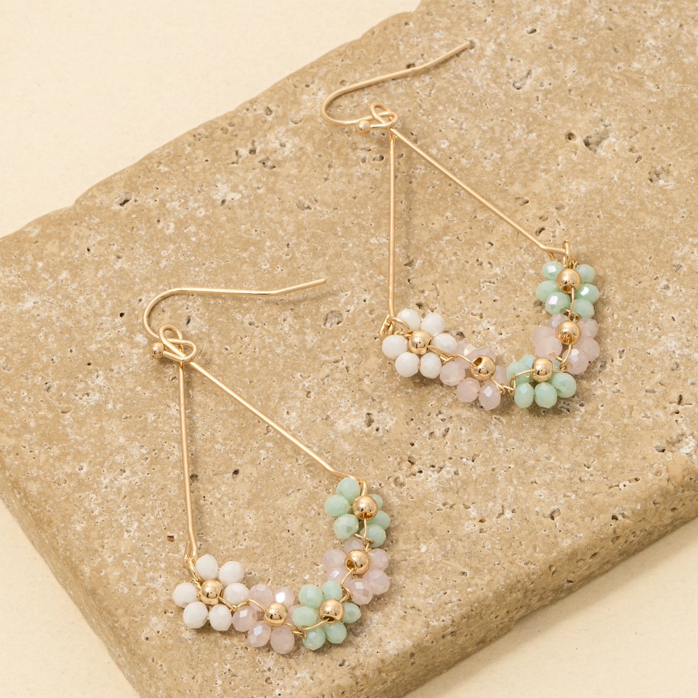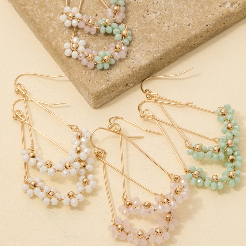 • The perfect way to add some edge to your look, this pair of dangle earrings presents a striking floral beaded tear drop design. A must-have pair of dangle earrings that adds a unique flair to any look. Available in MINTGD, MUL3GD, PINKGD, WHITEGD. This item is sold in packs of 1.
