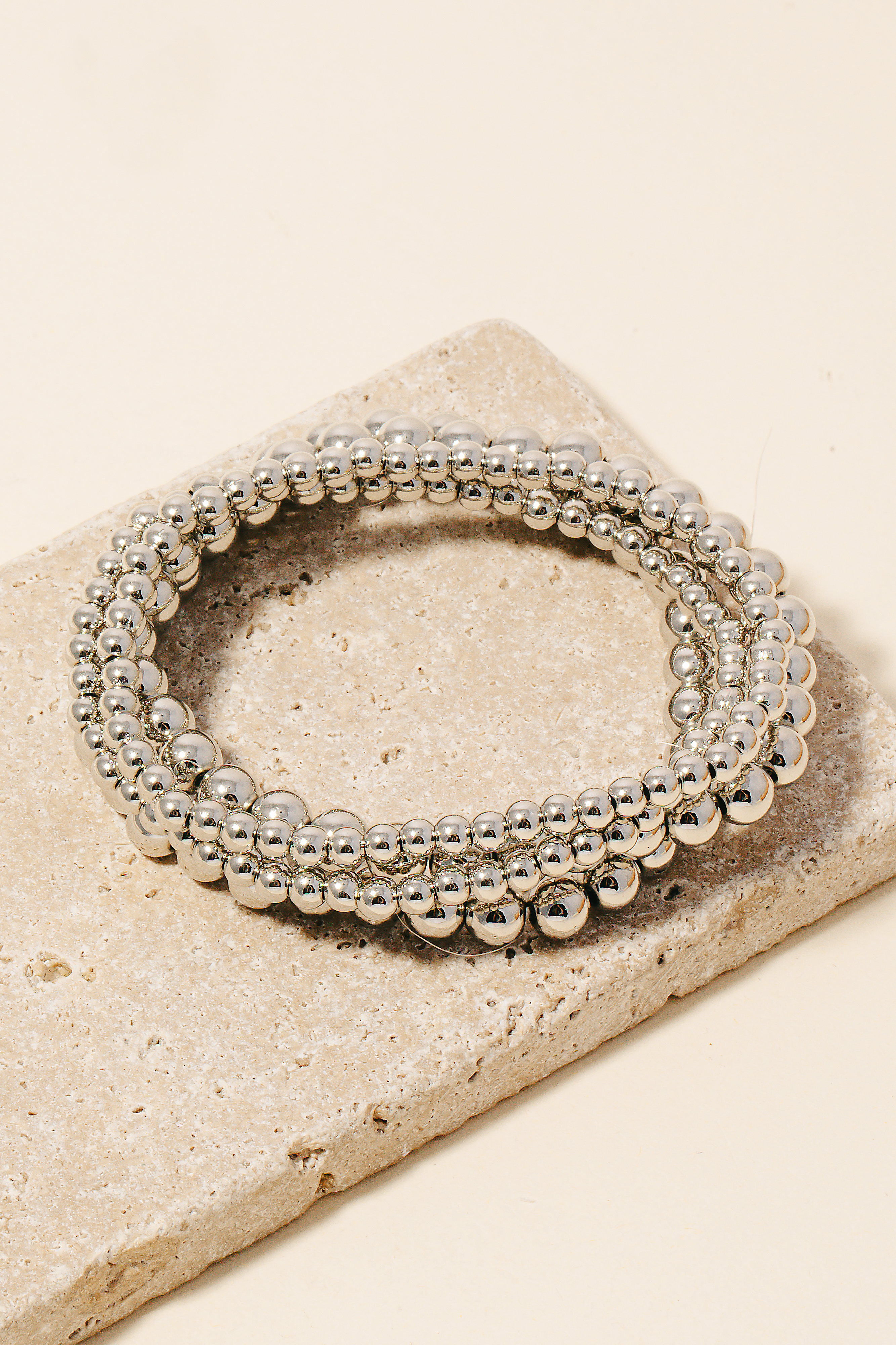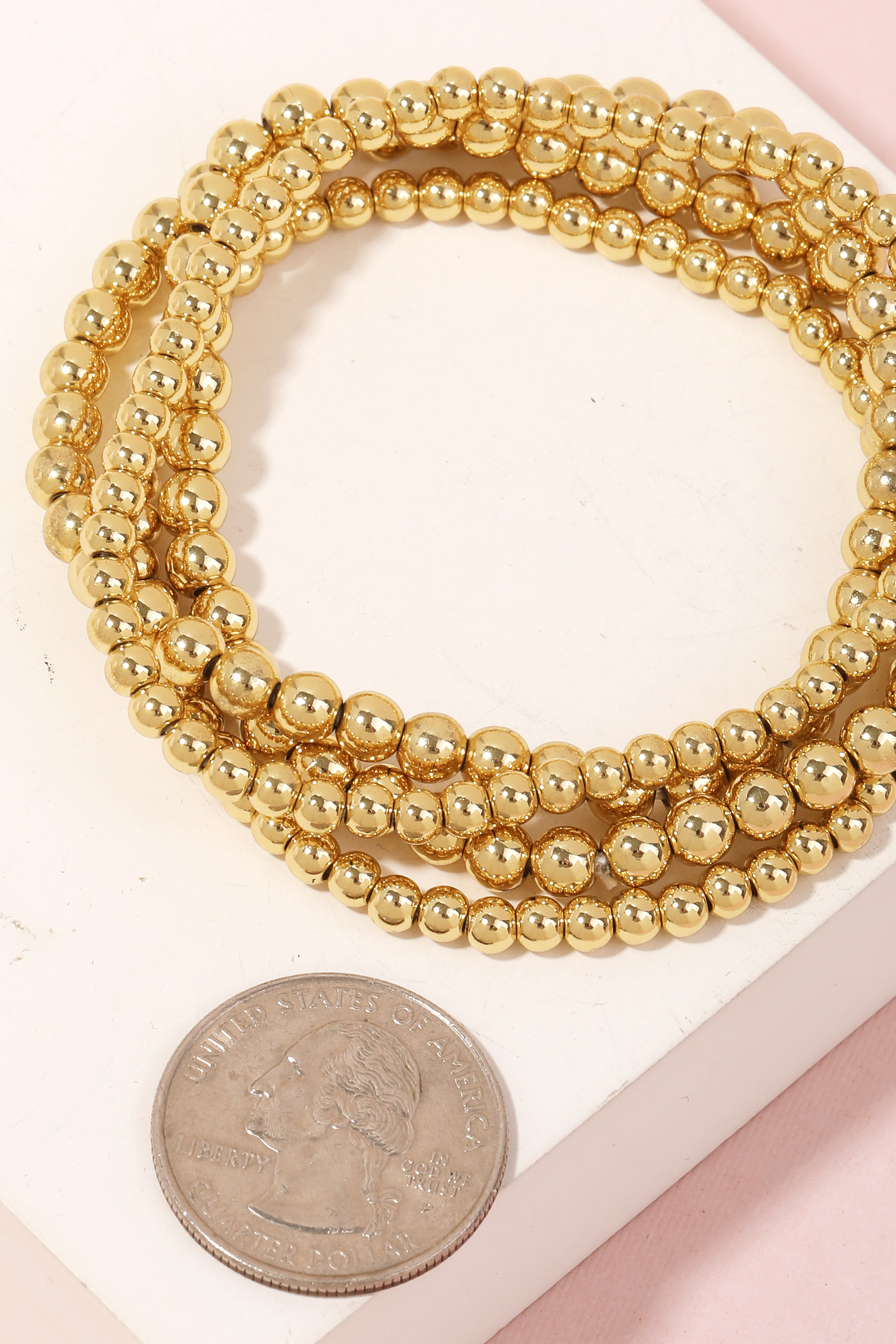 Mixed Pearl And Metallic Beaded Elastic Bracelet