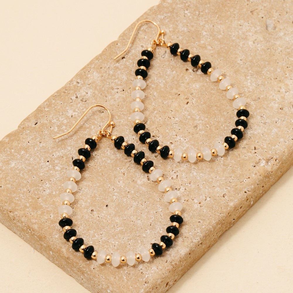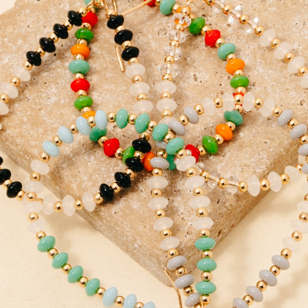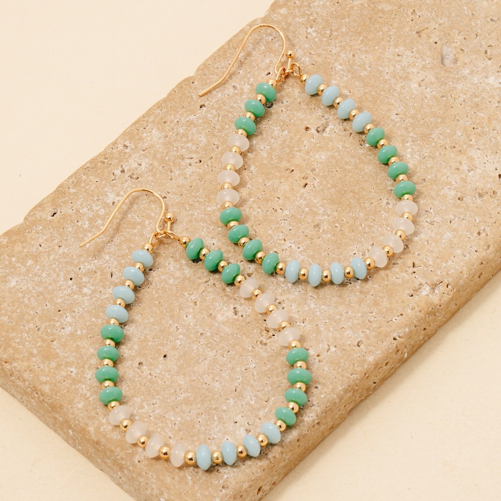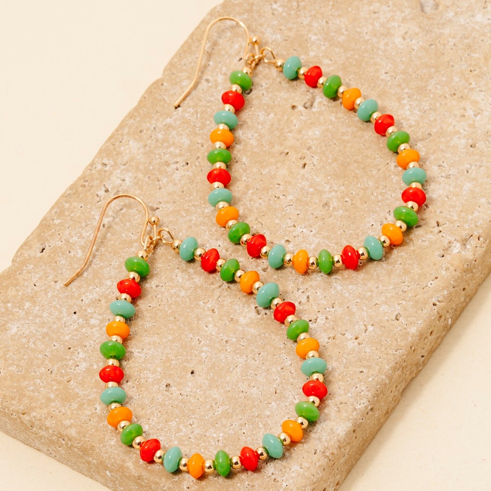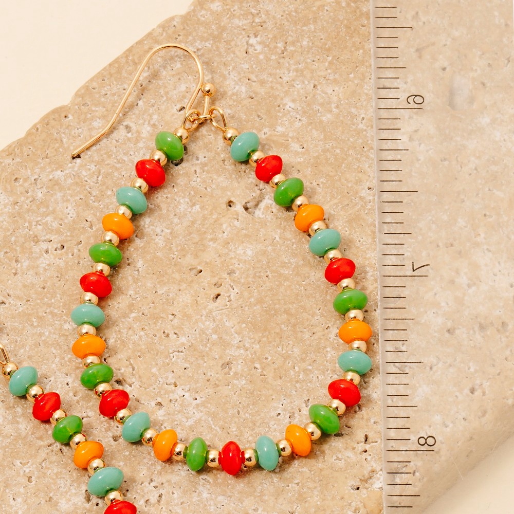 • This piece is the perfect way to add some glamour to your look, this pair of dangle earrings evokes a captivating glass and metallic beaded tear design. Elevate your personal style effortlessly with this versatile pair of dangle earrings, an essential component for a refined wardrobe. Available in BLK, CRY, GRY, MUL, TQ. This item is sold in packs of 1.