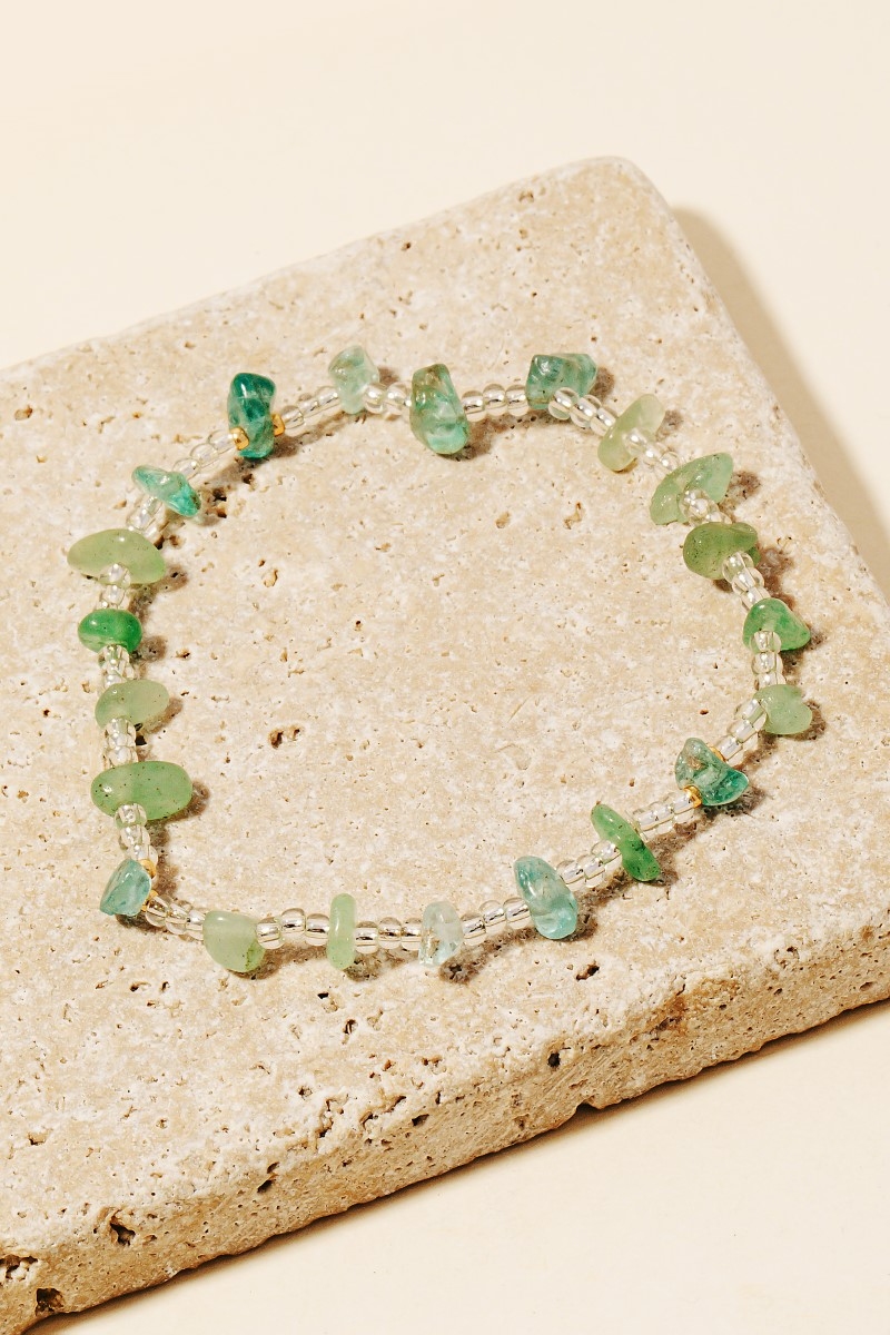 Chip Stones And Metallic Beaded Bracelet Set
