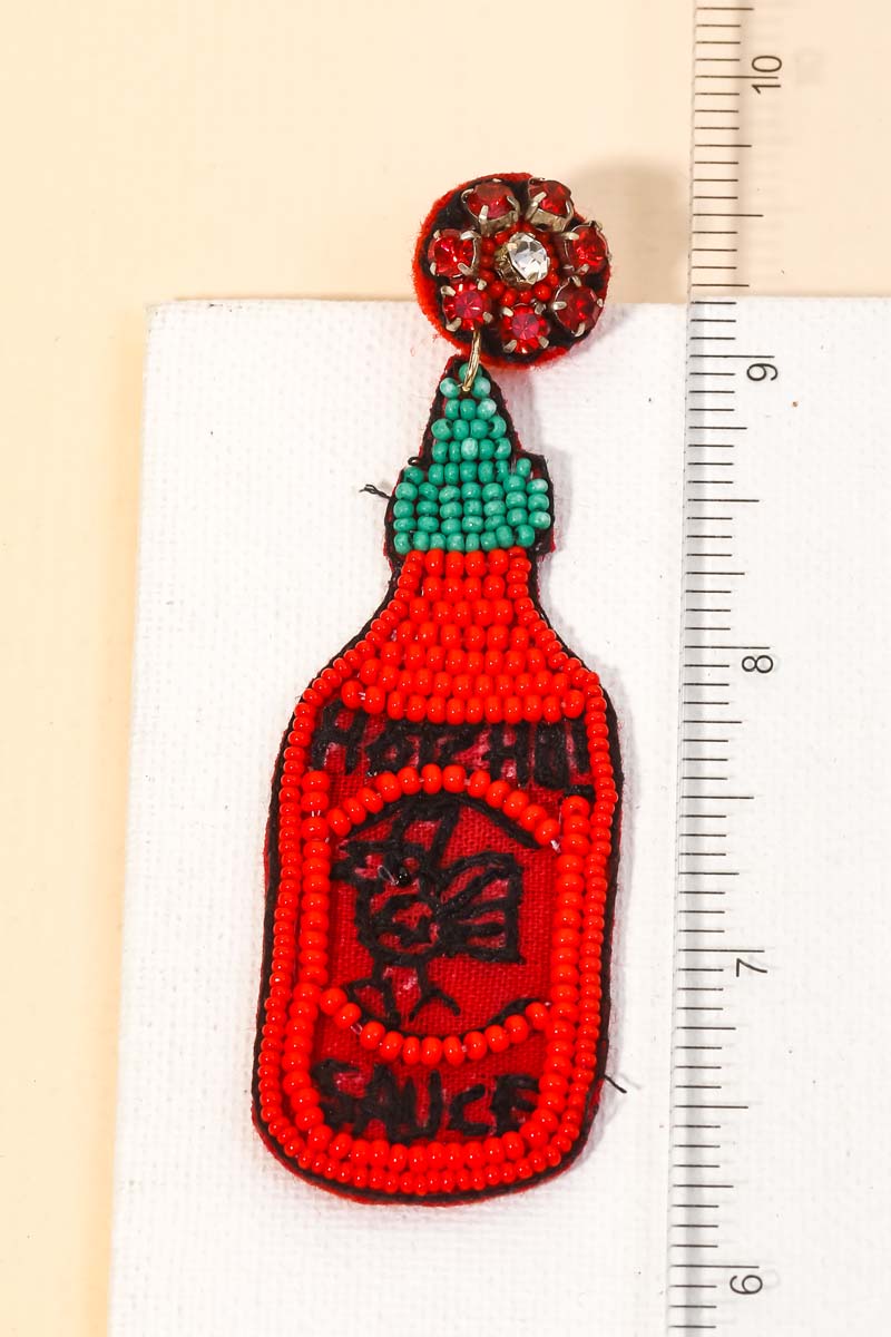 "An absolutely gorgeous stunning must have pair of earrings that features a bead seeded hot chili sauce earrings design. Perfect for casual occasions! Available in Rd