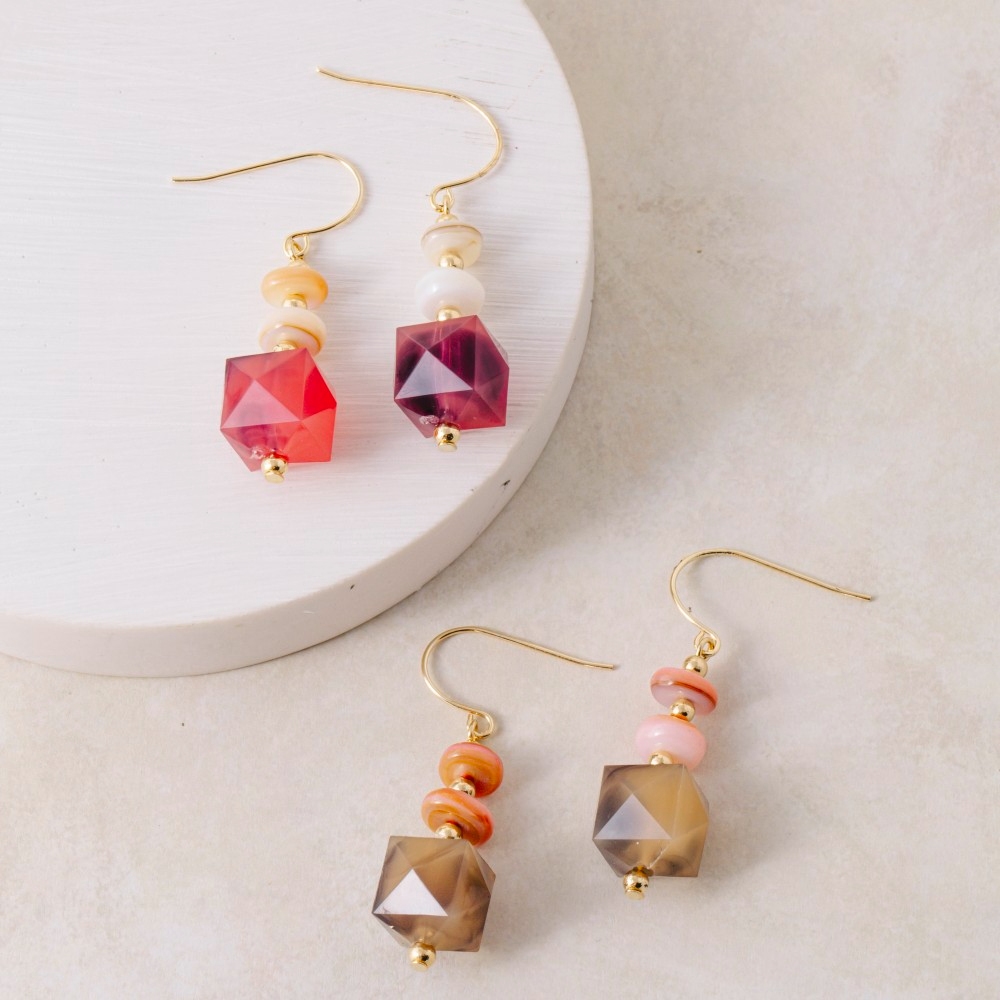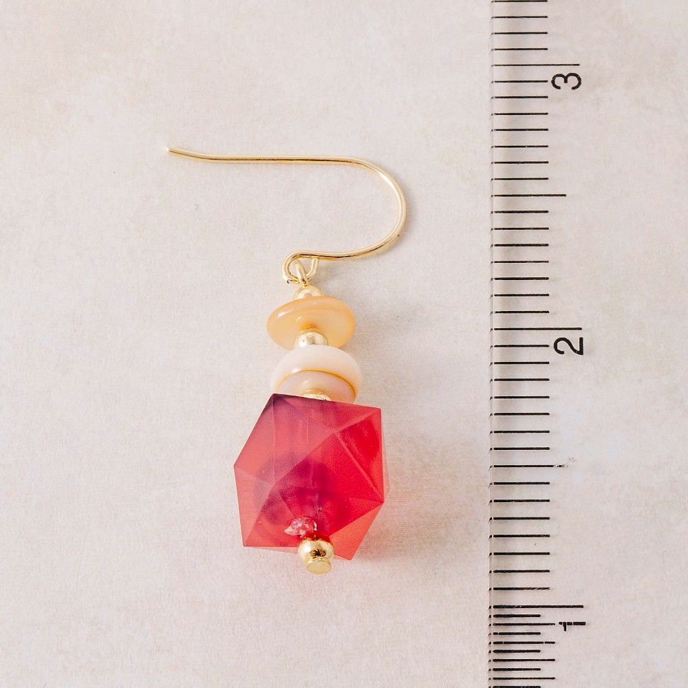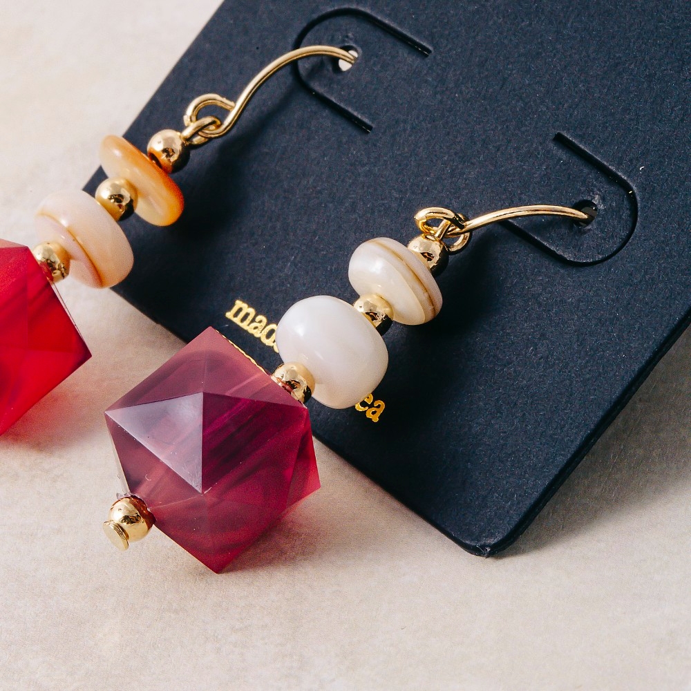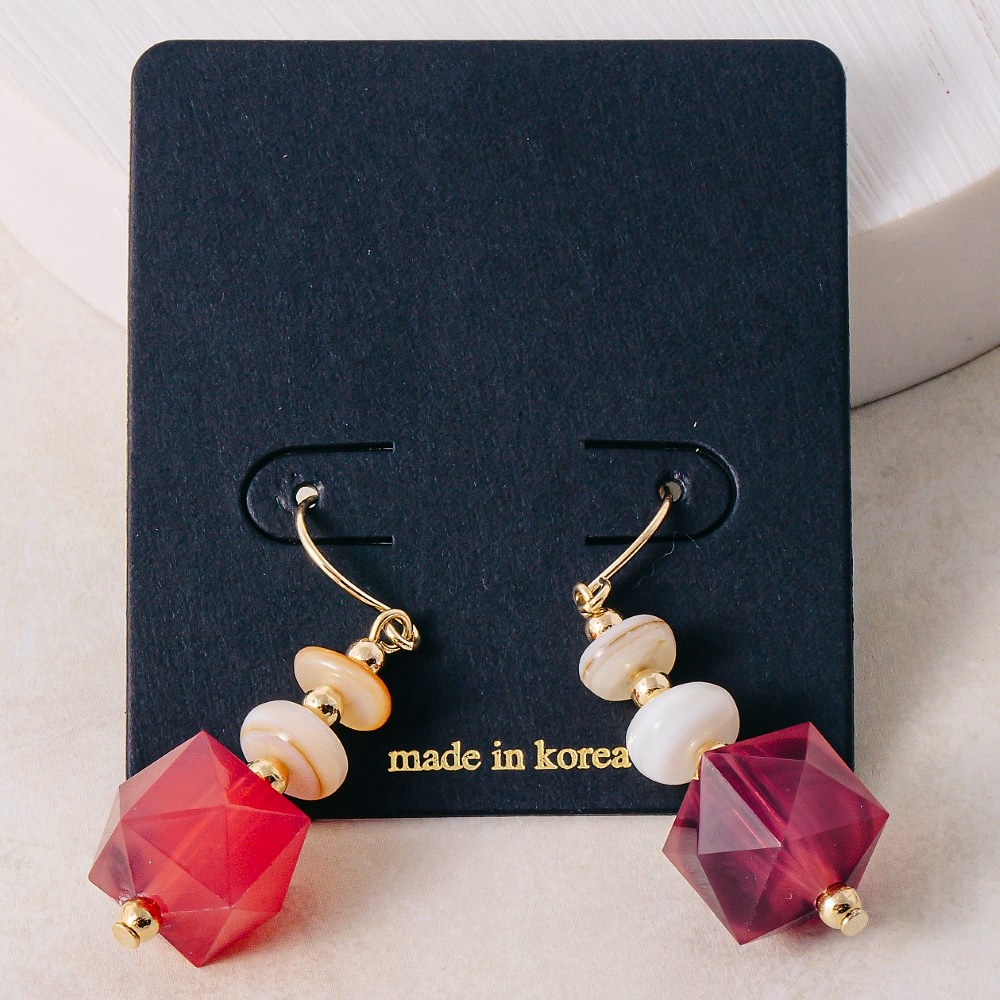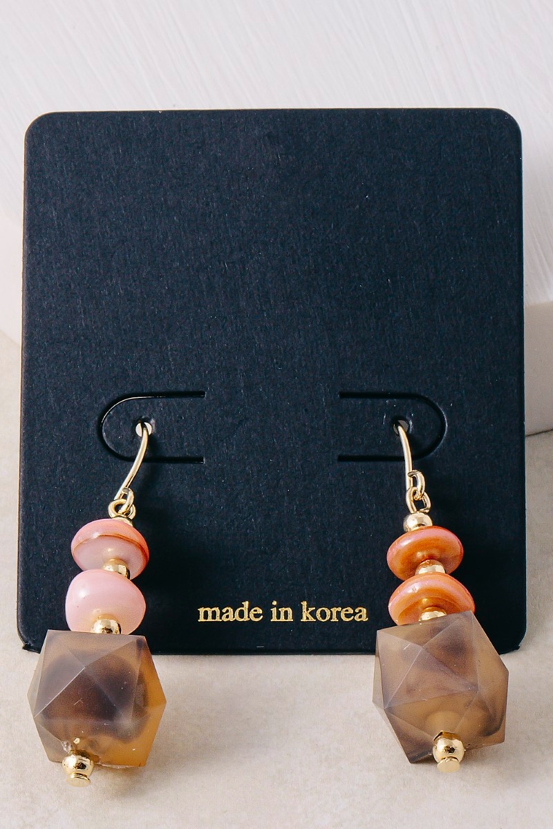 • This pair of dangle earrings is made with 10% Brass, 40% Shell and 50% Acrylic.