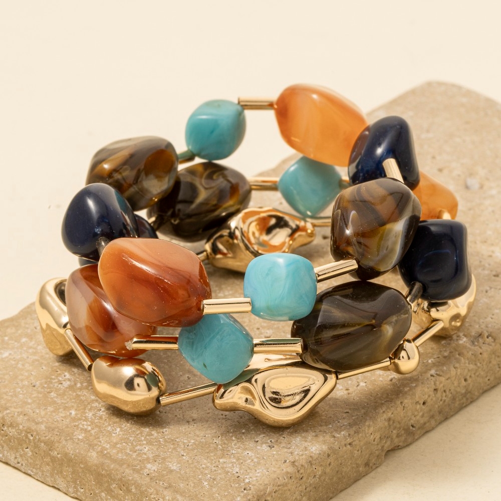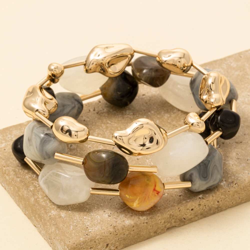 Chip Stones And Metallic Beaded Bracelet Set