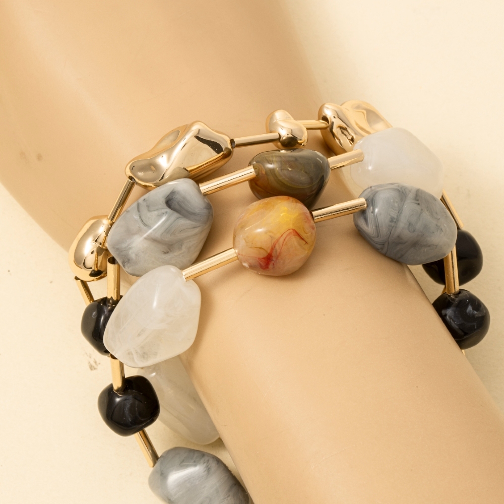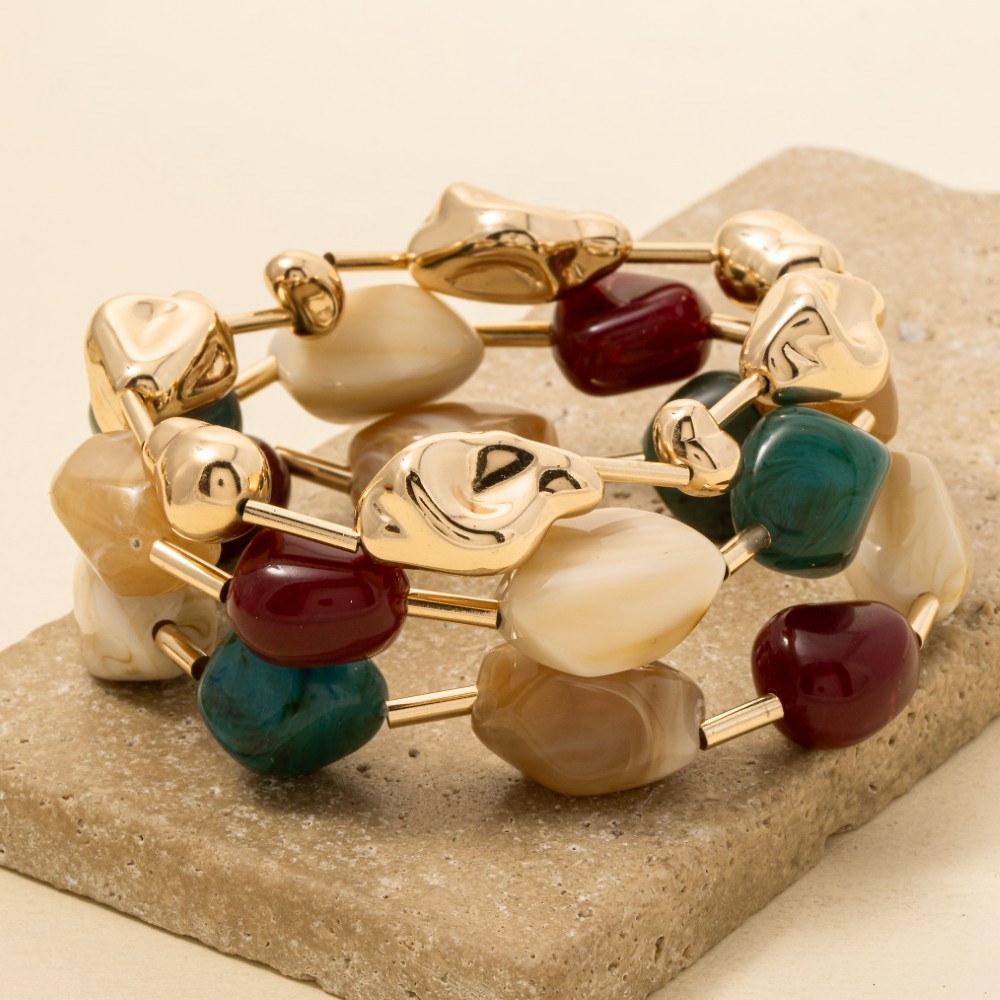 • This piece is designed to be both stylish and functional, this bracelet carries a charming irregular metallic and acrylic beaded set design. Redefine your wardrobe with this versatile bracelet, a timeless addition that brings an air of sophistication to any look. Available in GDCRY. This item is sold in packs of 1.