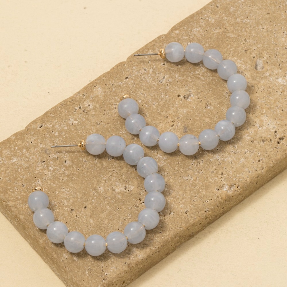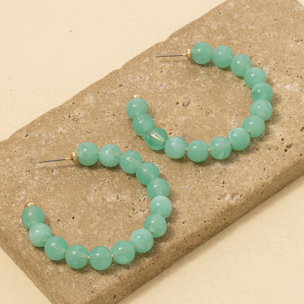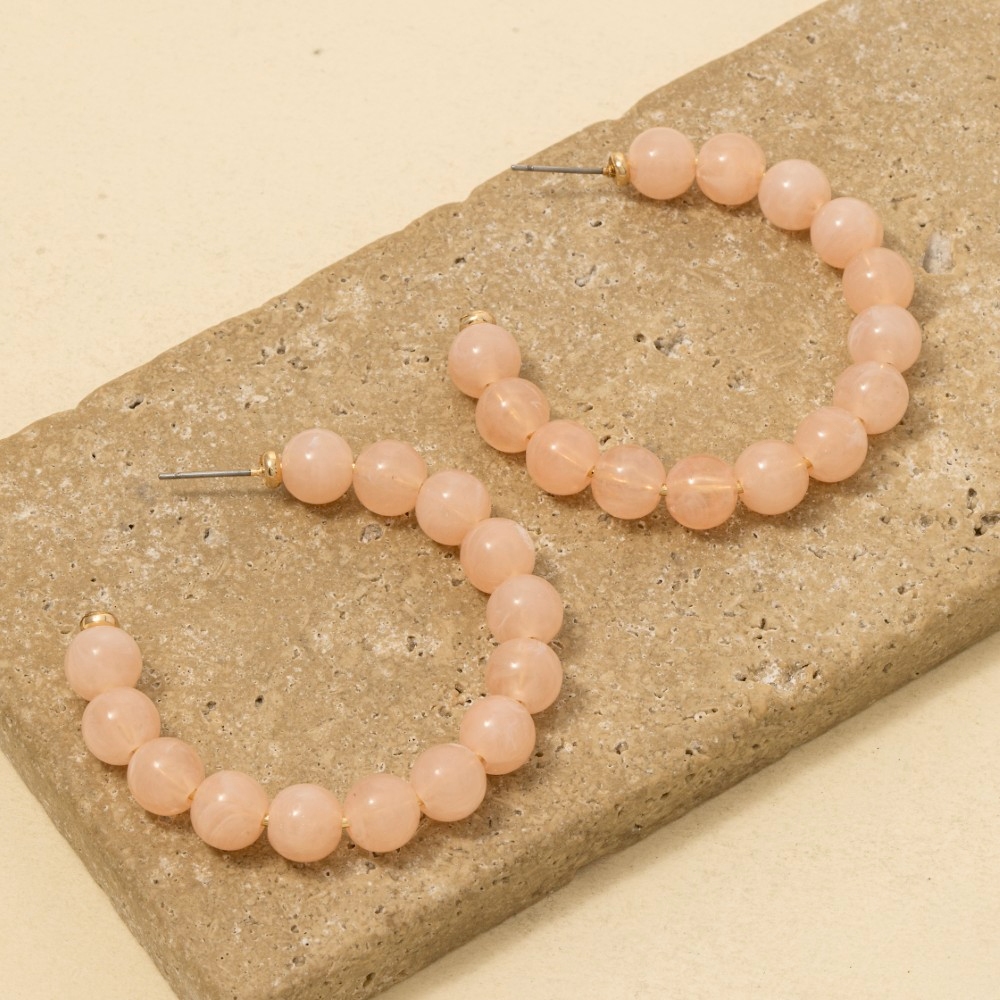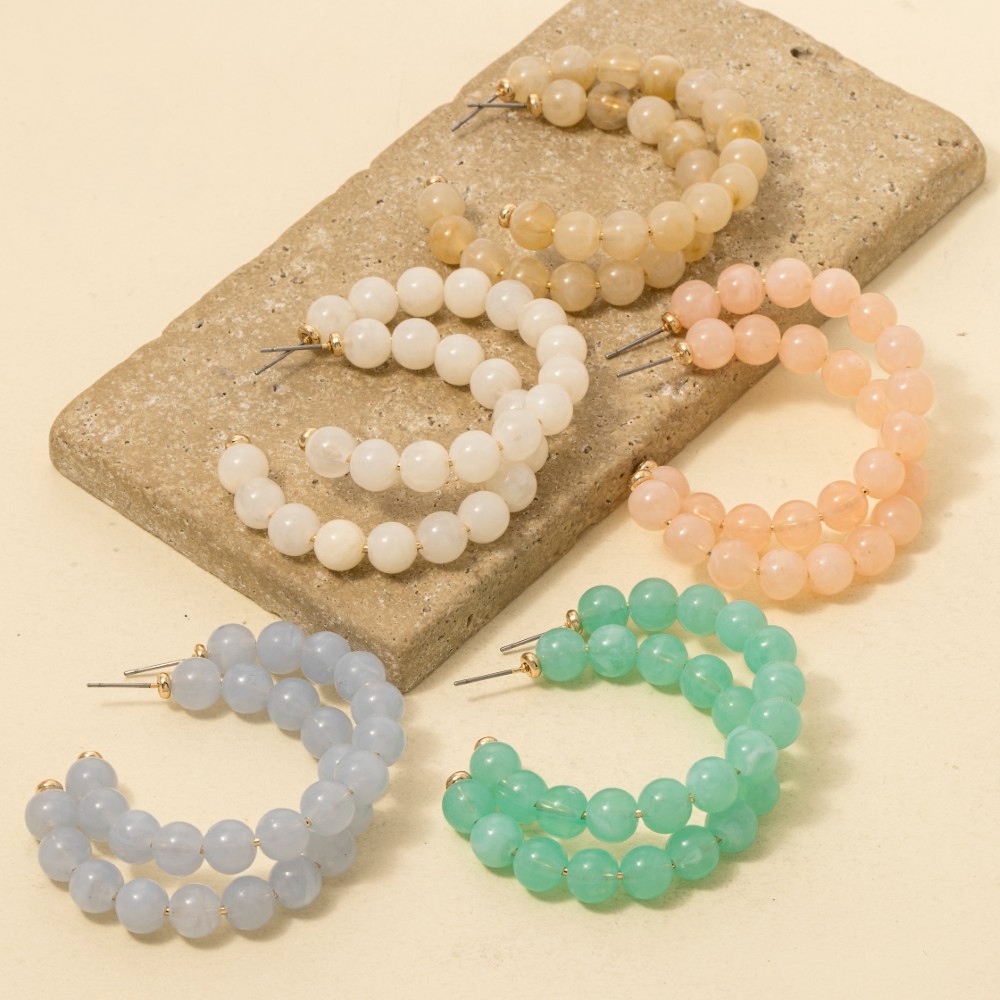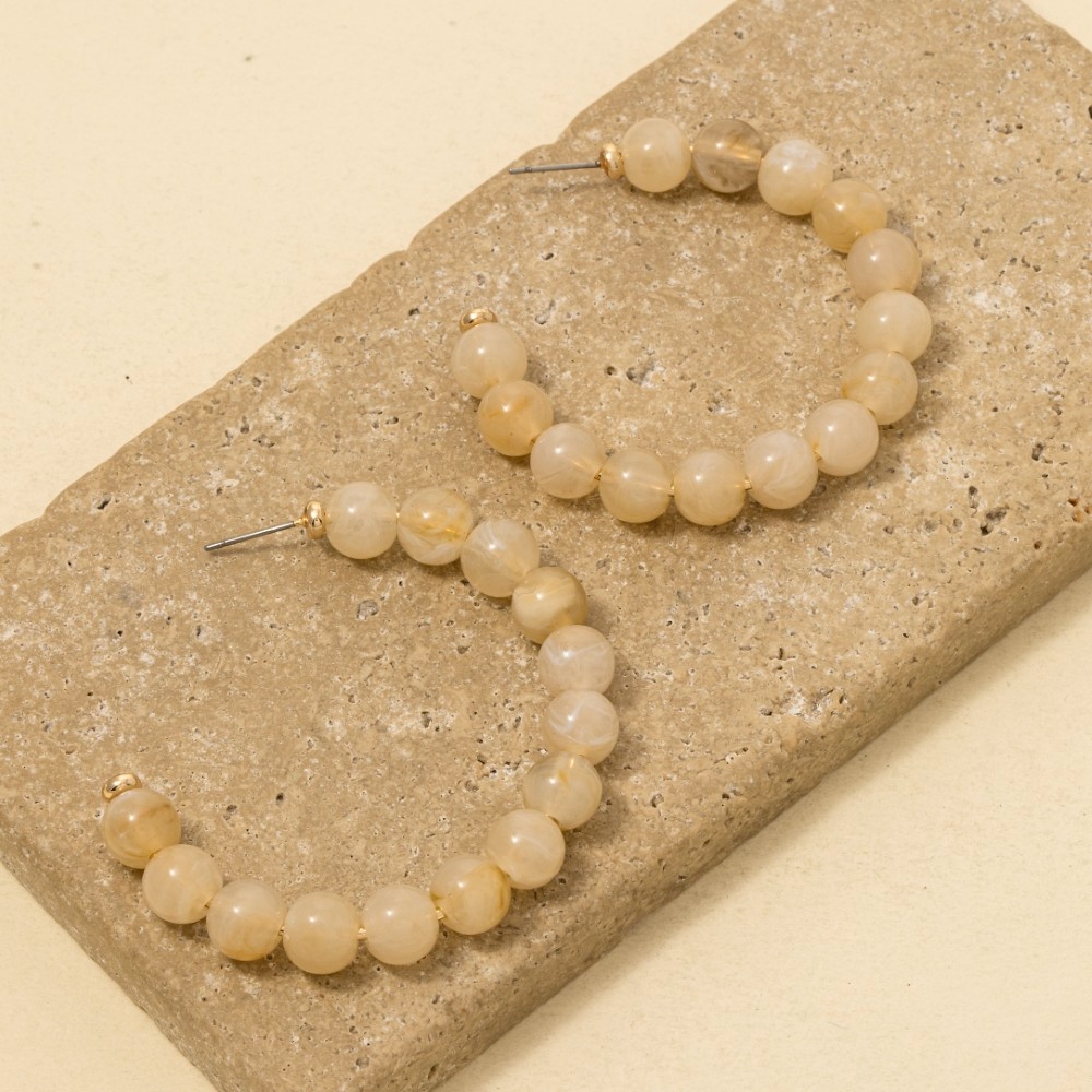 This is the perfect pair of hoop earrings for any occasion pair of hoop earrings exudes a refined marble resin ball beaded design. A stylish pair of hoop earrings that's perfect for complementing any outfit you wear. Available in IV, LBL, MI, NU, RS. This item is sold in packs of 1.