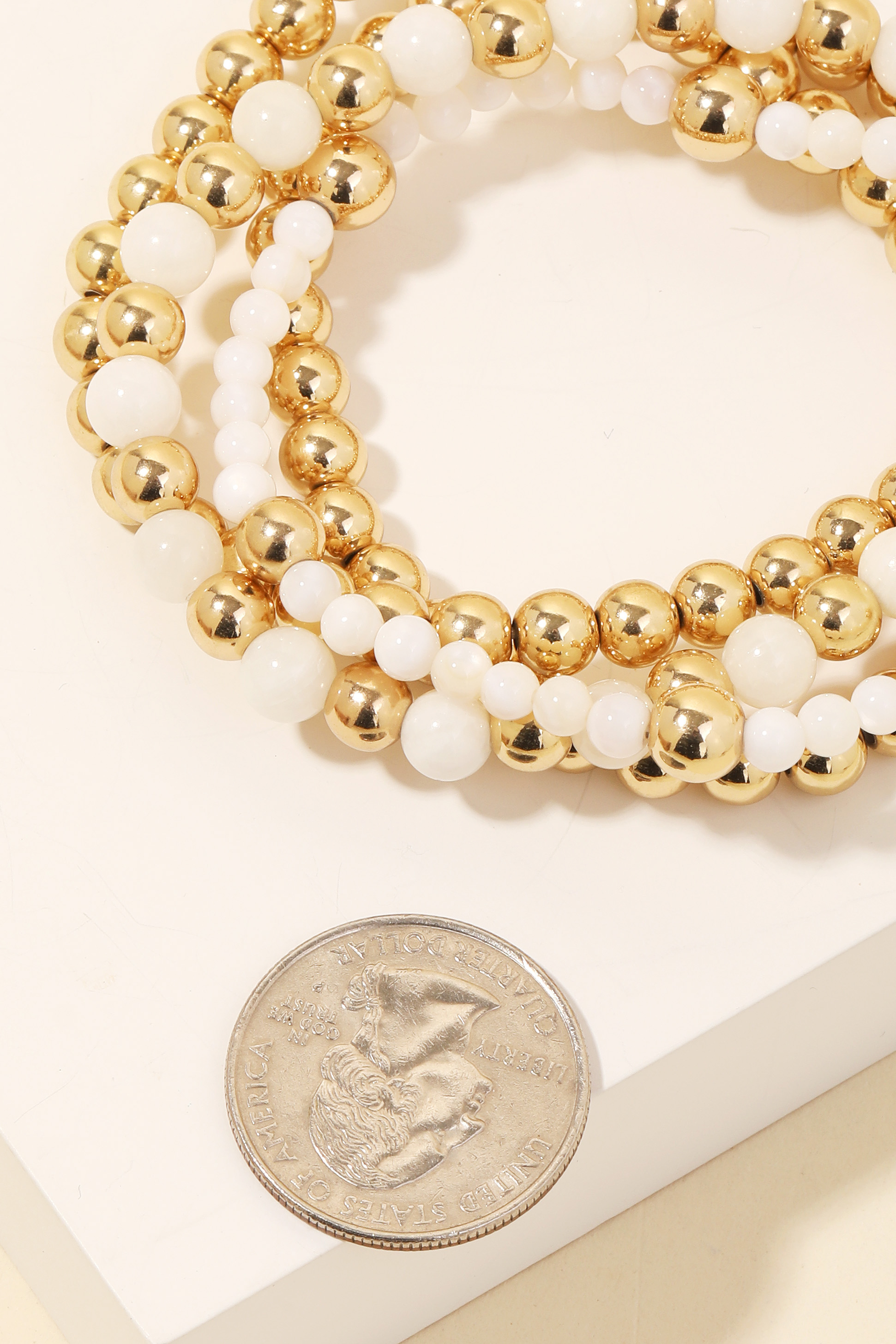 Mixed Chip Stone And Faceted Beads Bracelet Set