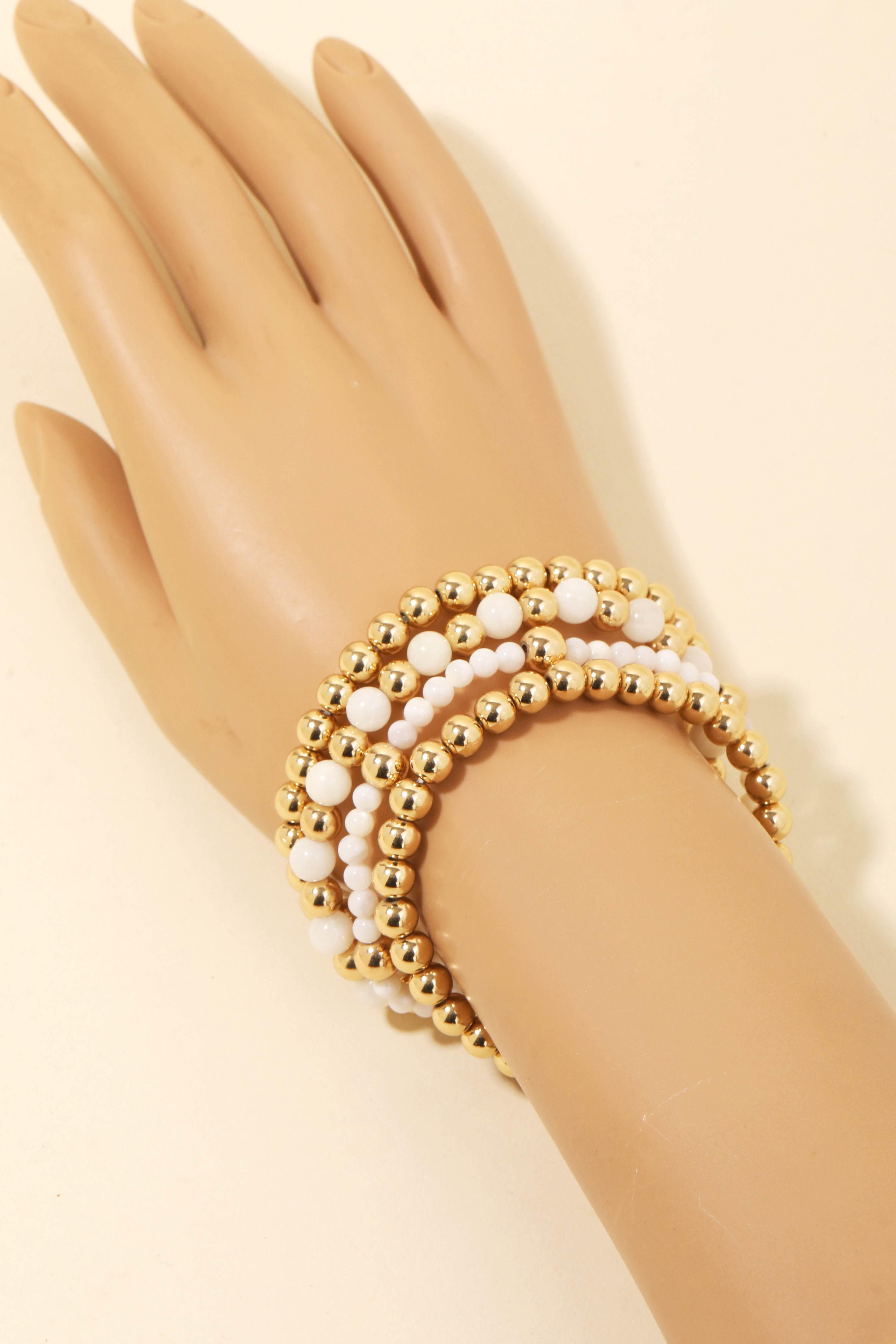 Mixed Pearl And Metallic Beaded Elastic Bracelet