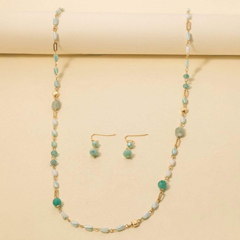 • This chain necklace is made with 10%Stone 80%Beads 10%Alloy.