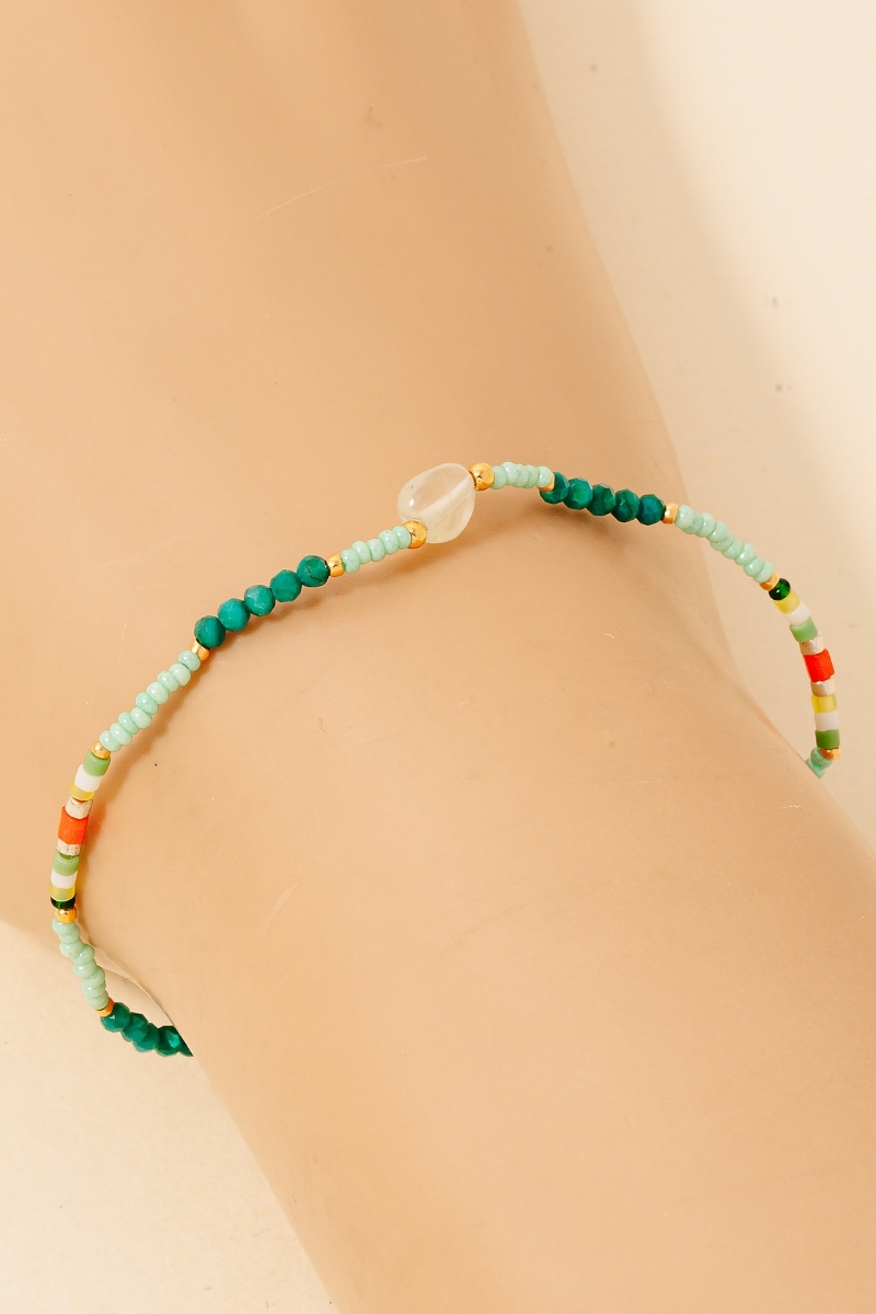 Chip Stones And Metallic Beaded Bracelet Set