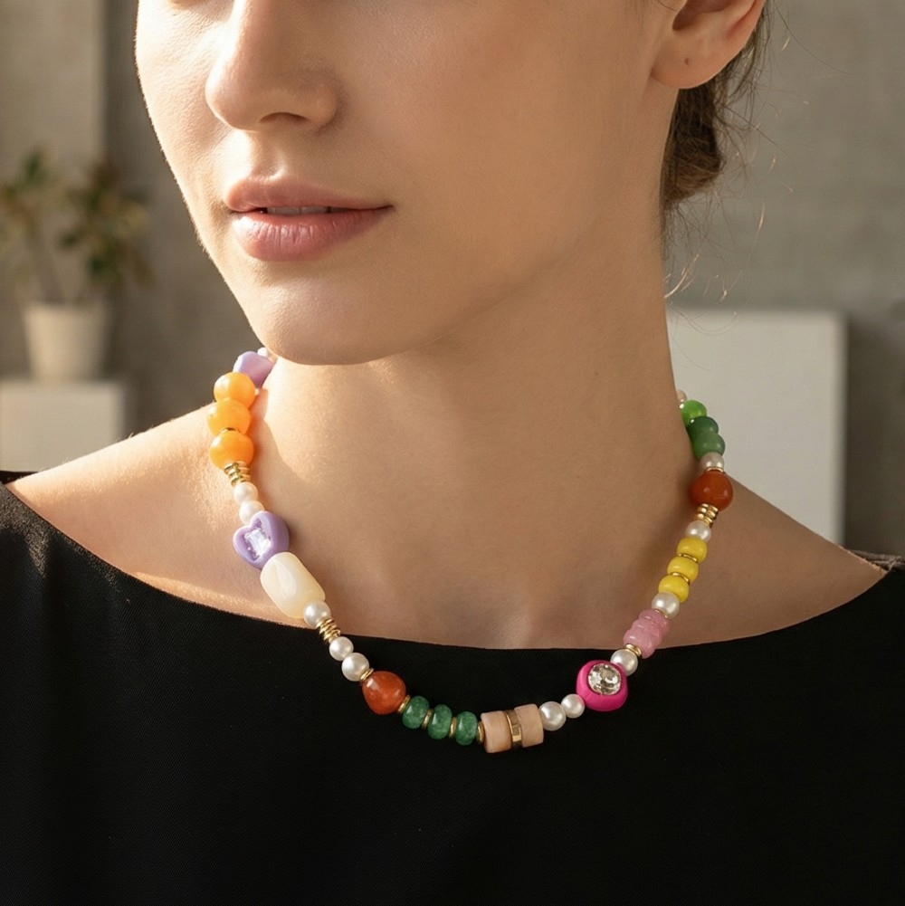 • Perfect for any occasion, this necklace offers a remarkable mixed vibrant beaded design. Elevate your fashion ensemble effortlessly with this versatile necklace, a stylish choice for the modern trendsetter. Available in GDMT. This item is sold in packs of 1.