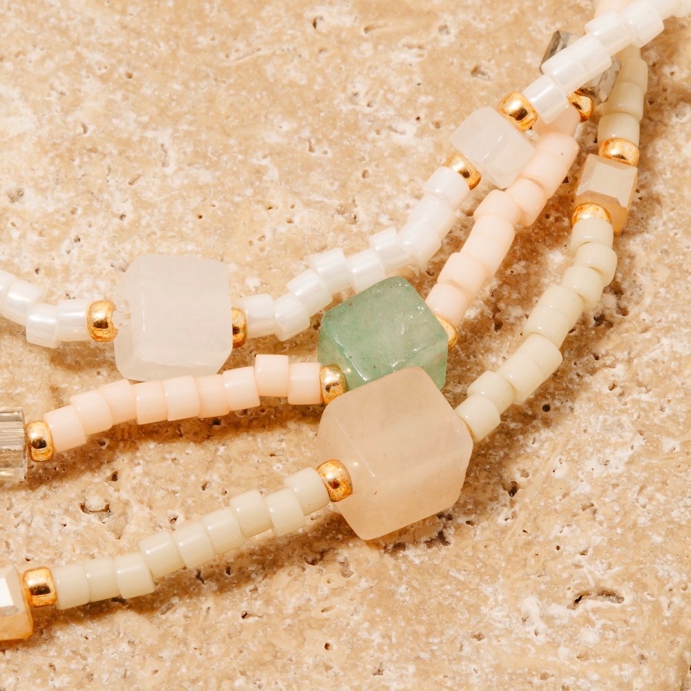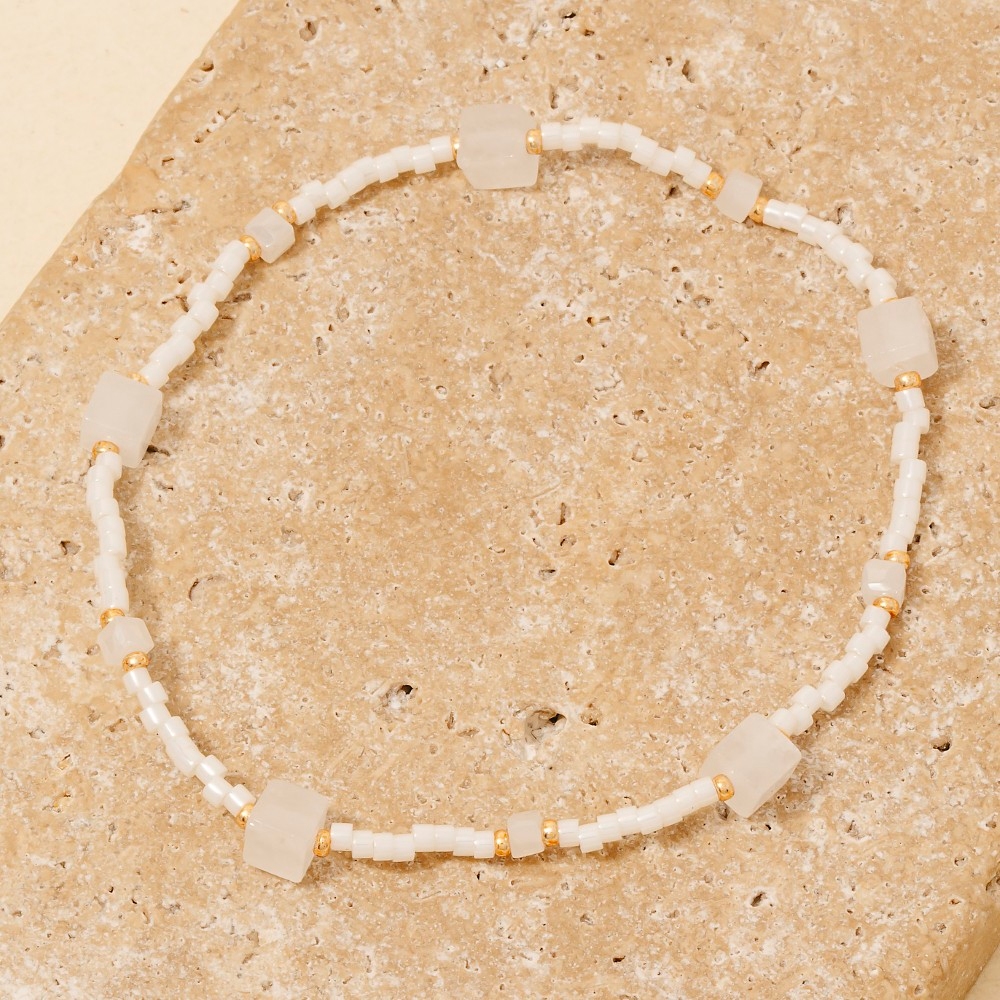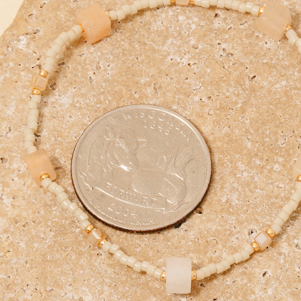 This piece is designed to make a statement, this bracelet contains a special stone and glass beaded dainty elastic design. The perfect bracelet for completing any outfit, whether you're dressing up or keeping it casual. Available in MI, PK, WH. This item is sold in packs of 1.