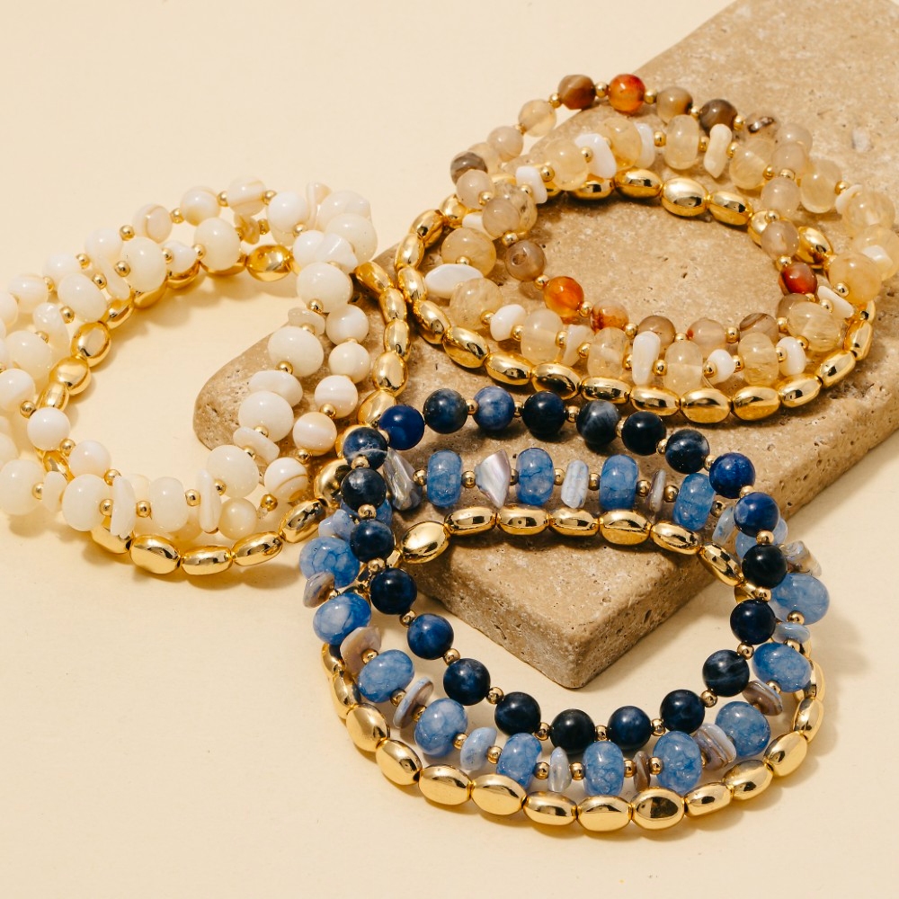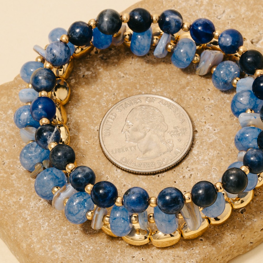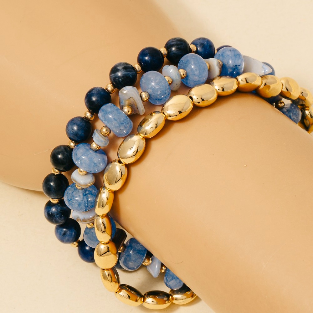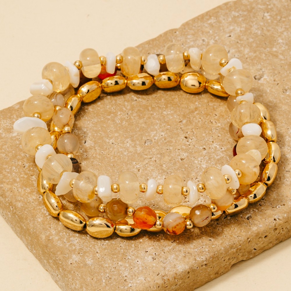 Chip Stones And Metallic Beaded Bracelet Set