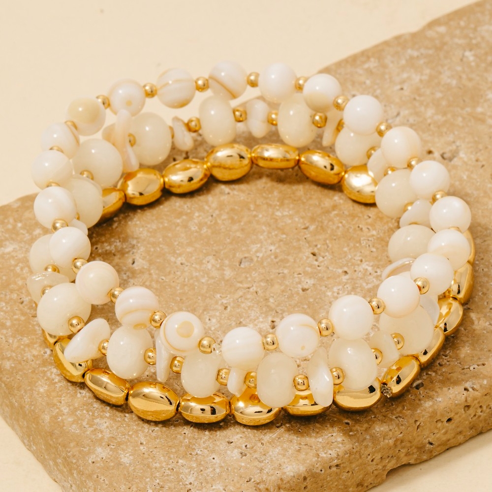 Shell Charms Faceted And Metallic Beaded Bracelet Set