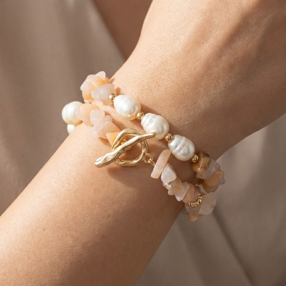 This bracelet is made with 10%Zinc Alloy 70%Rough 20%Pearl.