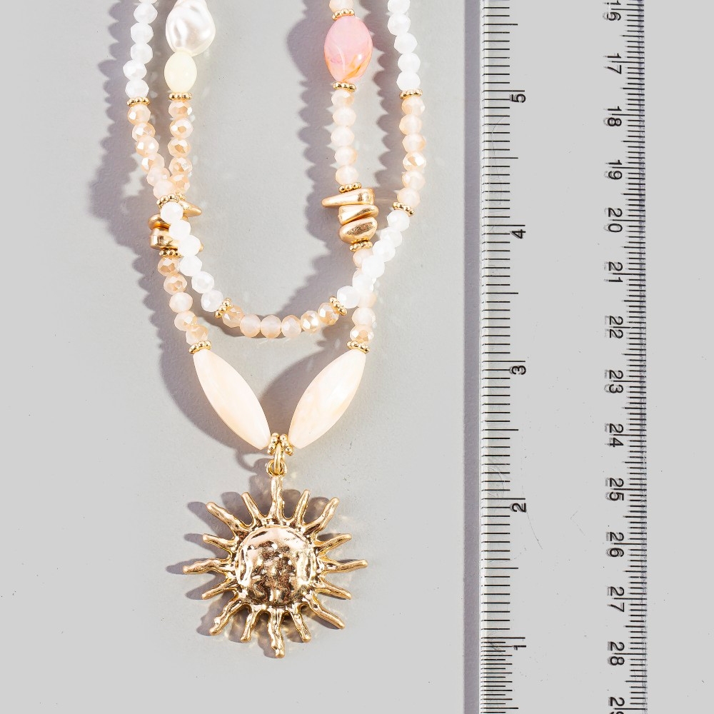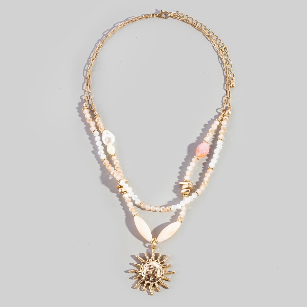 • Effortlessly chic and always on-trend, this pendant necklace showcases an alluring layered crystal & pearl beaded sunburst design. This item is a great way to add some texture and dimension to any outfit. Available in WGIV. This item is sold in packs of 1.