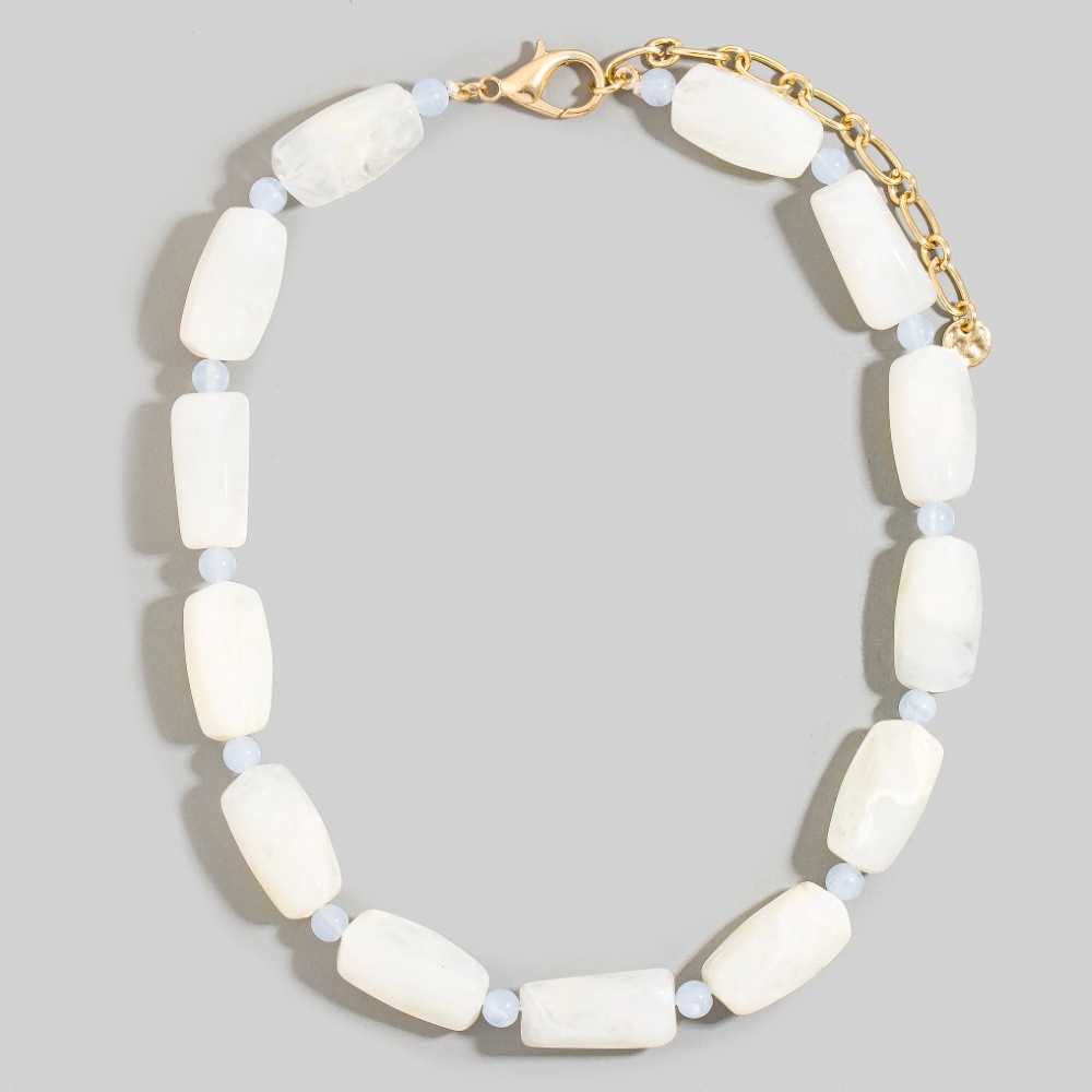 • A bold and daring choice that is sure to impress, this necklace flaunts a luxurious marble acrylic beaded design. Achieve a perfect blend of style and sophistication with this versatile necklace, a fashion-forward choice for any occasion. Available in IV, MI, NU, PE. This item is sold in packs of 1.