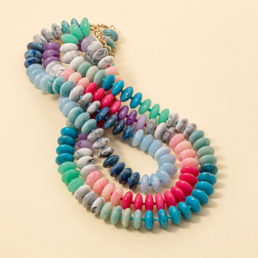 • Chic, sophisticated, and always in style, this necklace displays a unique marble resin disc beaded design. Perfect for adding a touch of glamour and sophistication to any outfit, this necklace is a must-have. Available in GDGRN, GDPNK, GDTQS. This item is sold in packs of 1.