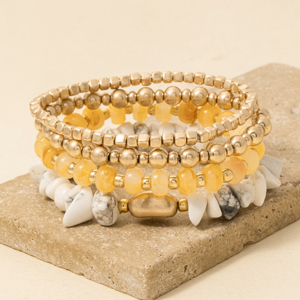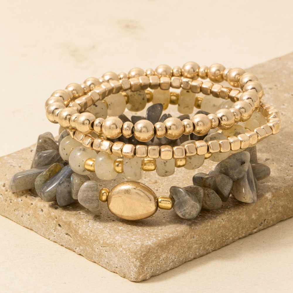 Mixed Chip Stone And Faceted Beads Bracelet Set