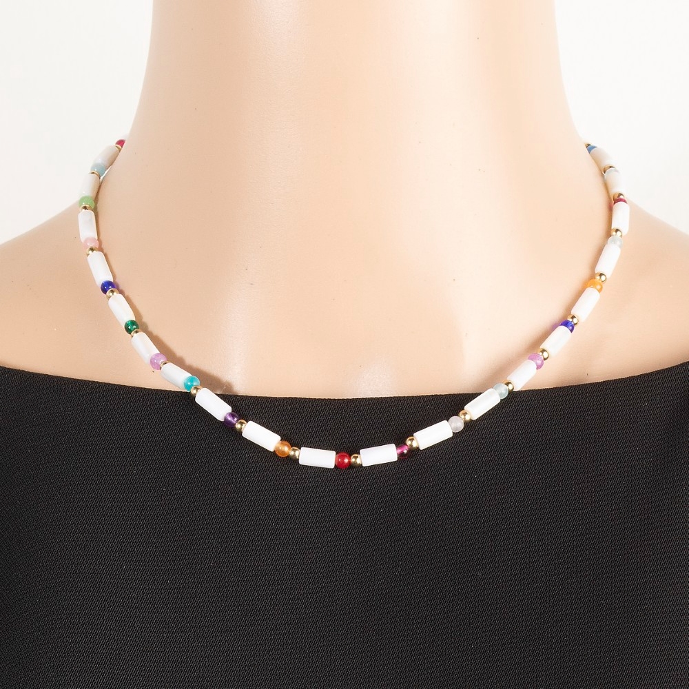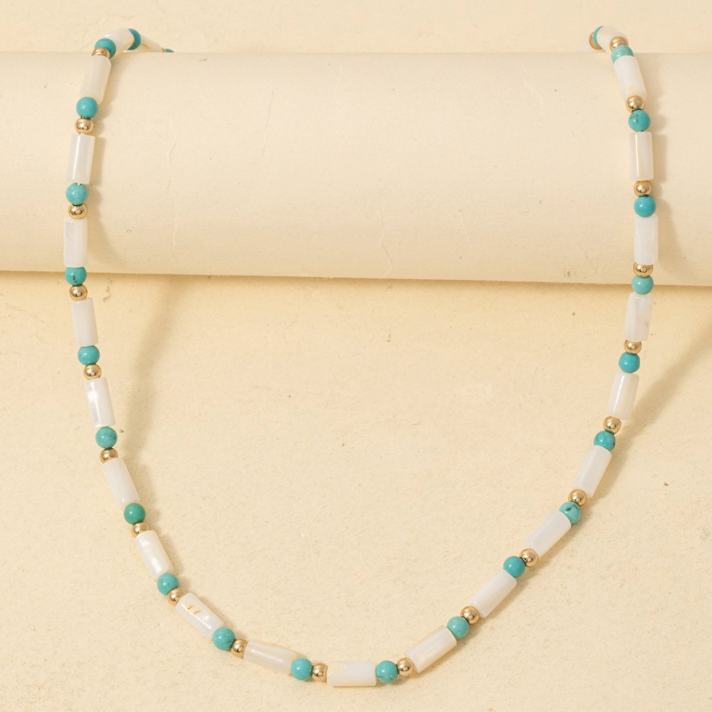 - Perfectly versatile and endlessly stylish, this necklace exudes a refined mixed cylinder and ball beaded design. This versatile necklace adds a touch of elegance to any outfit. Available in MU, WH. This item is sold in packs of 1.