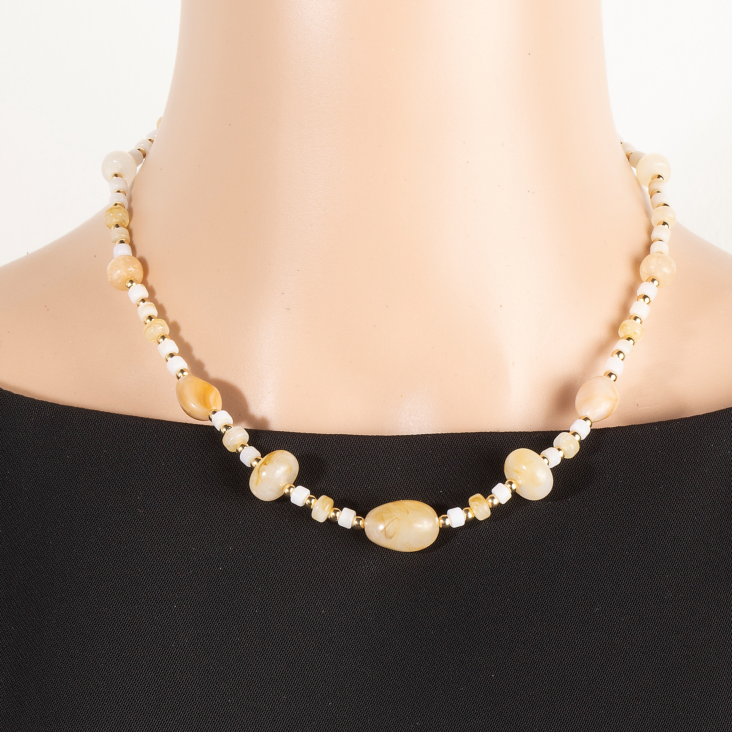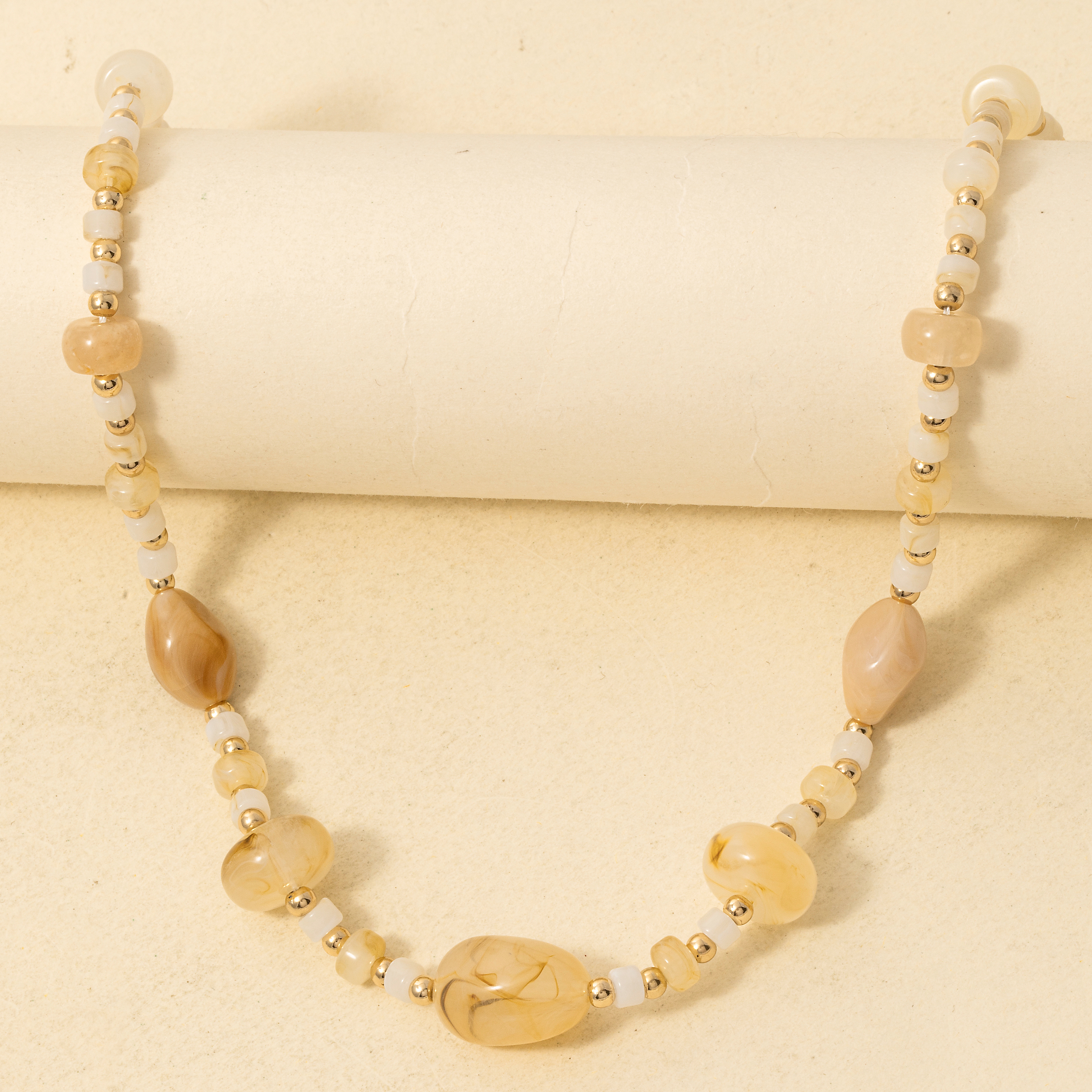 Marble Resin And Metallic Beaded Layered Necklace