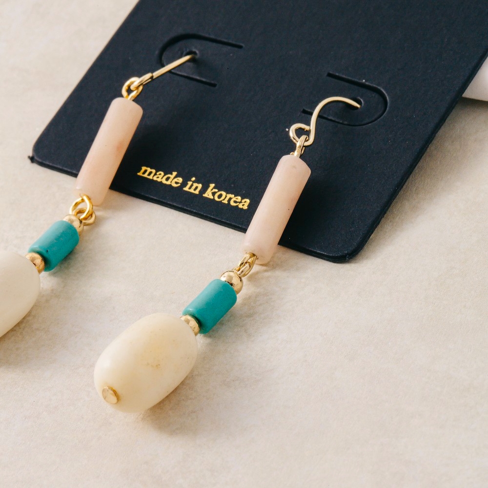 • This pair of dangle earrings is made with 10% Brass, 50% Gemstone and 40% Horn.