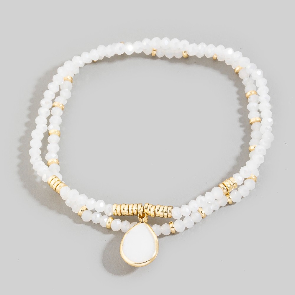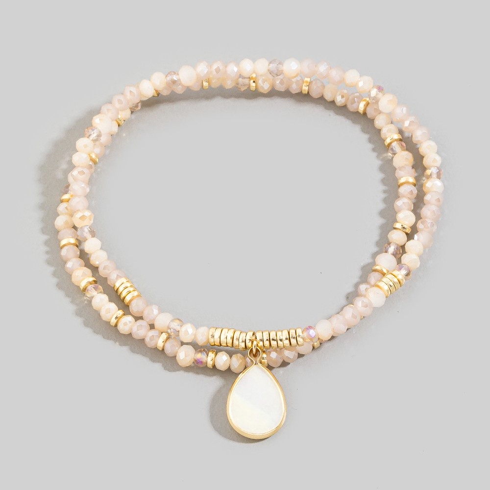 • Make a statement, this bracelet contains a special mother of pearl tear charm mixed beaded design. A chic and sophisticated bracelet that's perfect for dressing up or down. Available in GDGB, GDGY, GDMU, GDWH. This item is sold in packs of 1.