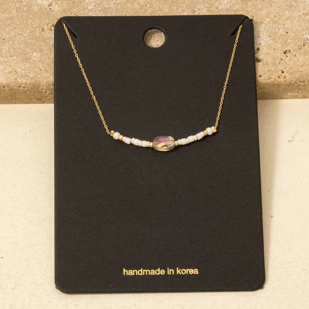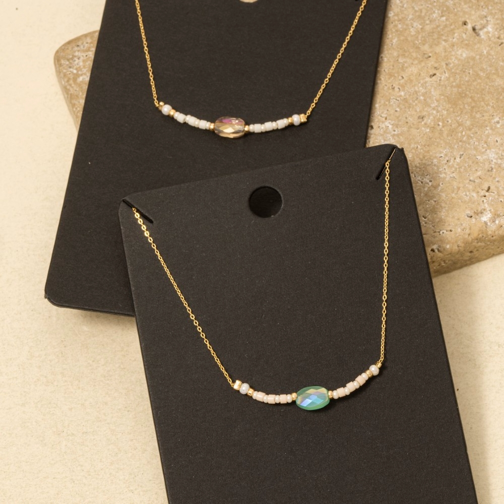 • Stay ahead of the fashion curve, this necklace displays a unique oval glass bead seed beaded charm design. Achieve a perfect balance of style and sophistication with this versatile necklace, the ultimate choice for the fashion-savvy individual. Available in MI, PK. This item is sold in packs of 1.