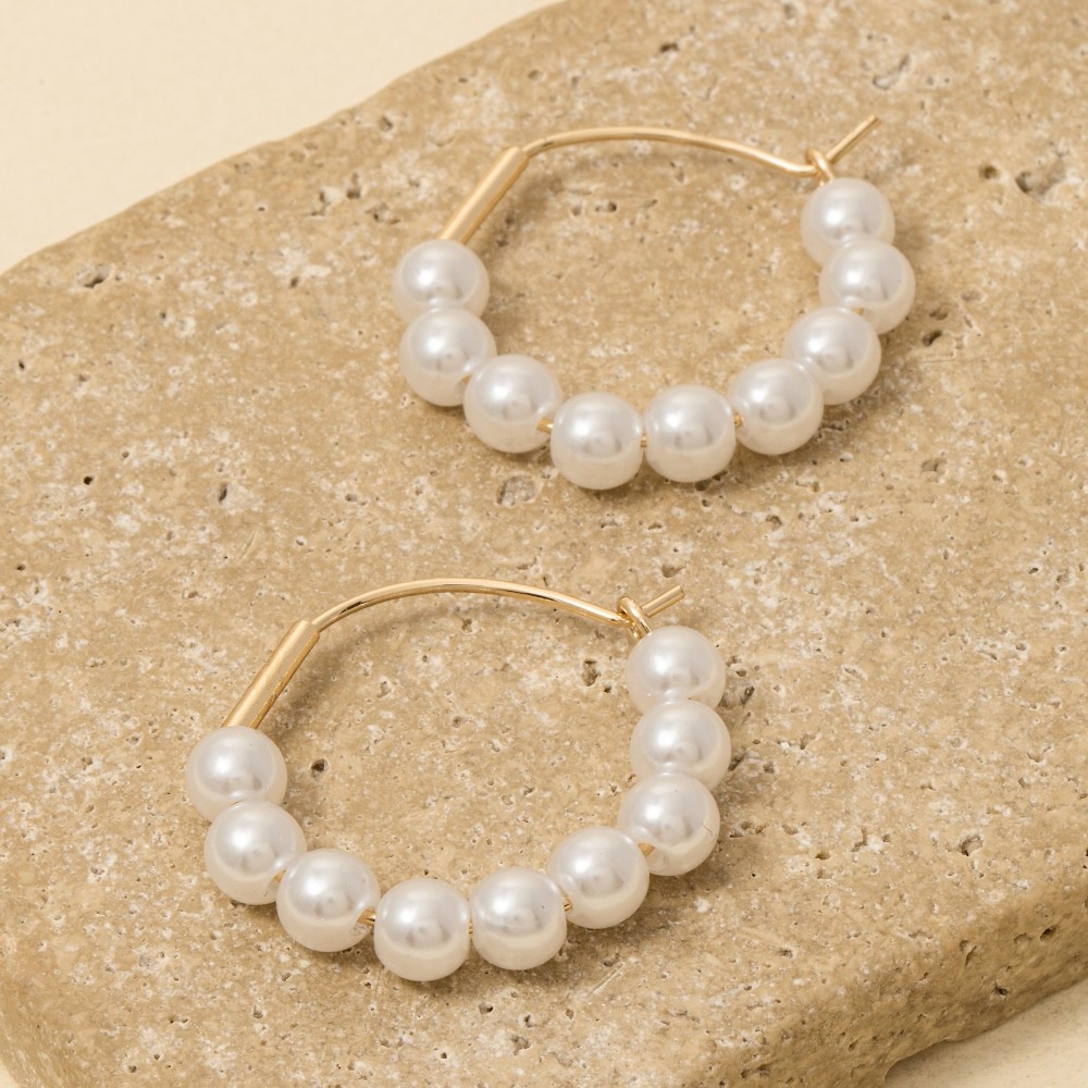 • This piece is perfect for those who want to showcase their unique style, this pair of hoop earrings carries a charming pearl beaded design. Perfect for adding a pop of color or texture to any outfit, this pair of hoop earrings is a must-have. Available in GD. This item is sold in packs of 1.