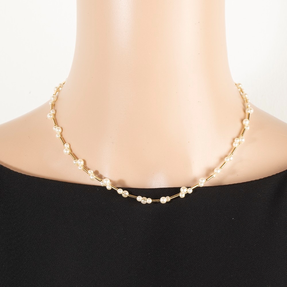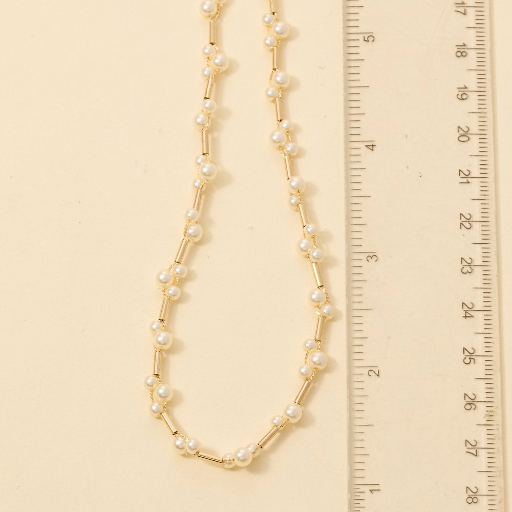 • A stunning addition to any jewelry collection, this necklace radiates a sleek pearls and mini tube beaded design. Redefine your fashion identity with this versatile necklace, a timeless piece that complements any wardrobe. Available in G. This item is sold in packs of 1.