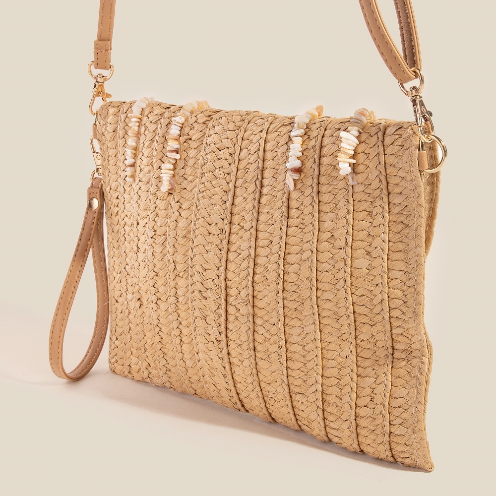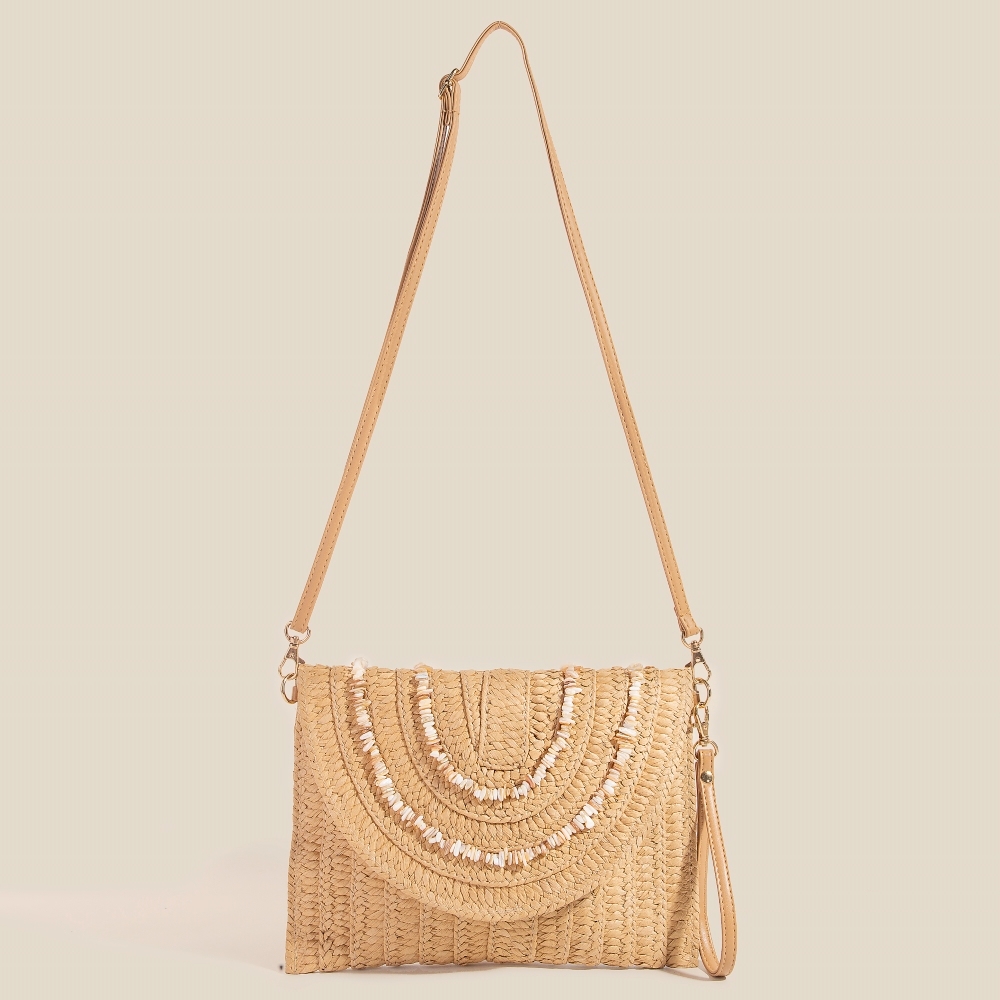 • Effortlessly stylish and always on-trend, this clutch bag contains a special shell beaded accent paper woven envelope design. Perfect for dressing up or down, this versatile clutch bag adds a touch of sophistication to any look. Available in IV, TA. This item is sold in packs of 1.