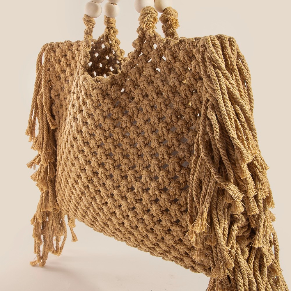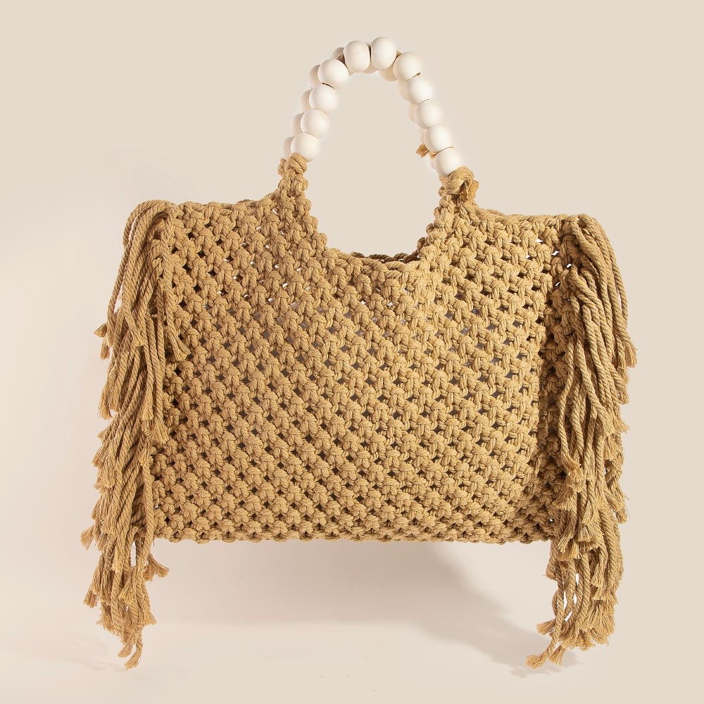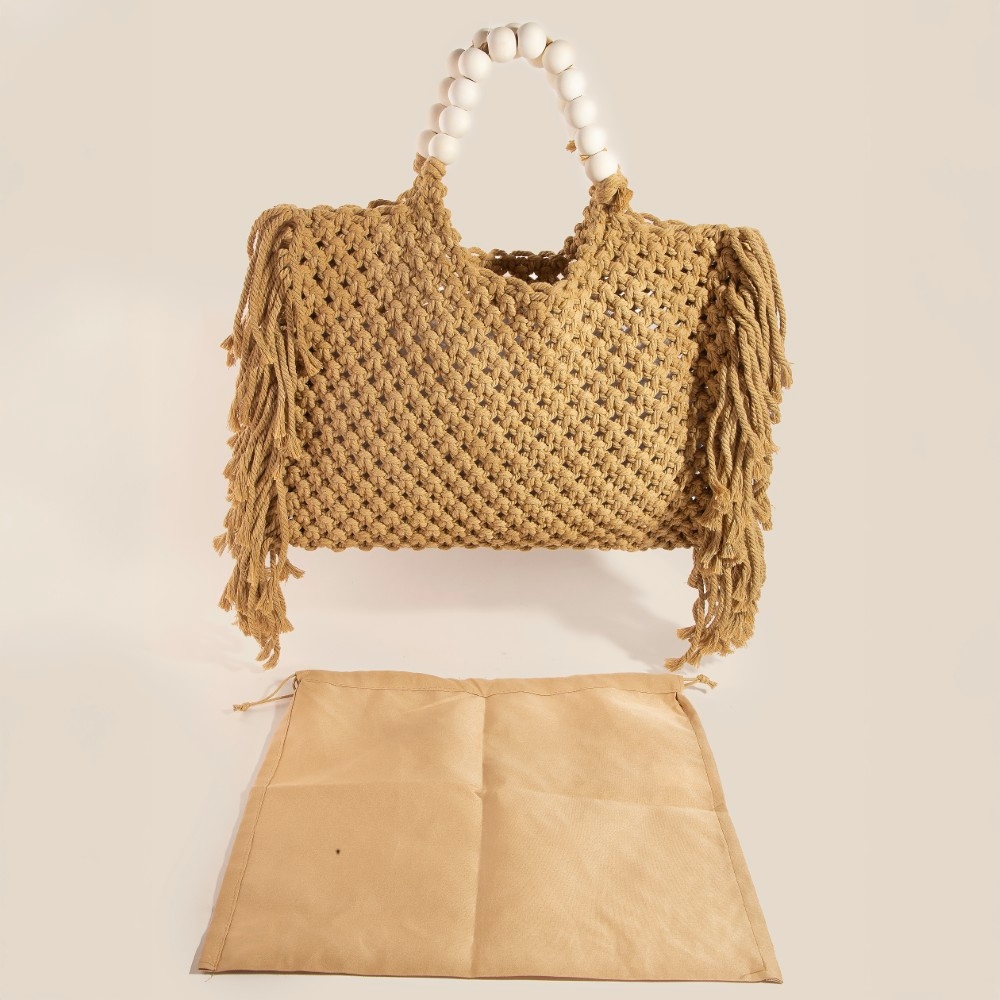 • Unleash your inner fashionista, this tote bag showcases an alluring wooden beaded handle braided design. This item is a great way to add some texture and dimension to any outfit. Available in IV, KA. This item is sold in packs of 1.