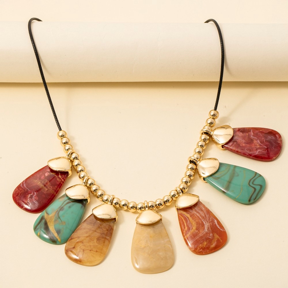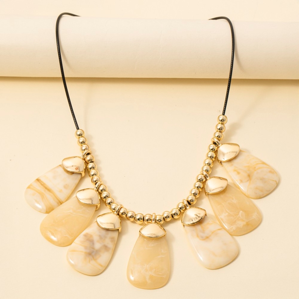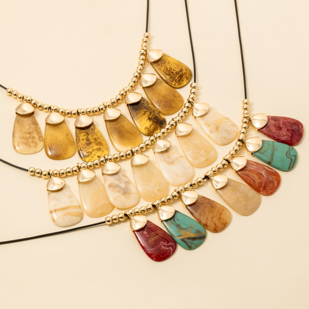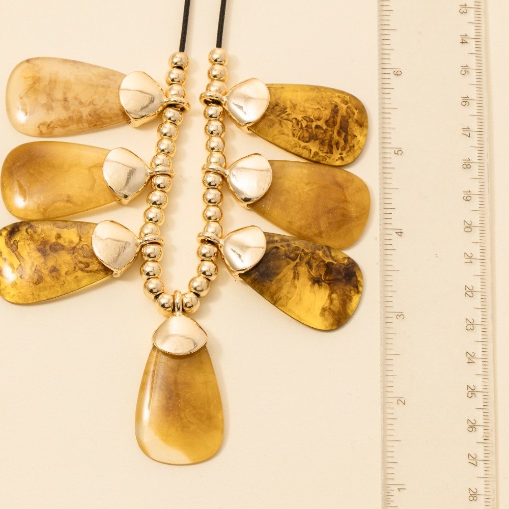 • Effortlessly chic and always on-trend, this necklace encompasses a grand resin stone charms statement design. Redefine your fashion identity with this versatile necklace, a timeless piece that complements any wardrobe. Available in BR, IV, MU. This item is sold in packs of 1.