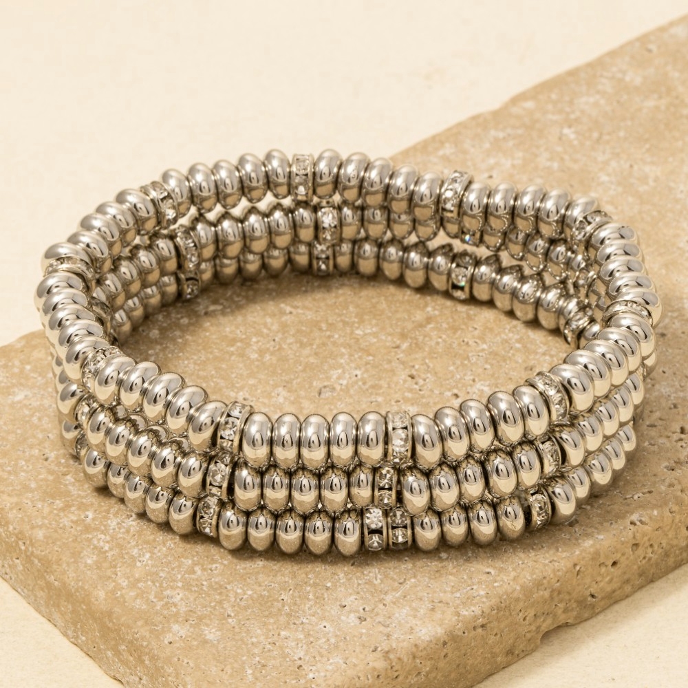 • A unique and stylish piece that sets you apart, this bracelet incorporates a remarkable rhinestone and metallic disc beaded set design. Experience the transformative power of this versatile bracelet, effortlessly enhancing the overall aesthetic of your outfit. Available in GD, RH. This item is sold in packs of 1.