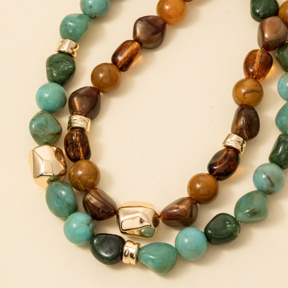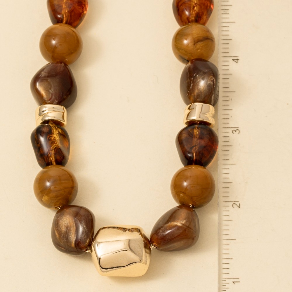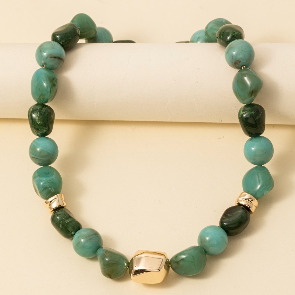 - Stay on-trend and ahead of the fashion curve, this necklace displays a unique rounded chunky marble acrylic beaded design. This necklace is the perfect way to add a touch of elegance to any outfit. Available in BR, TQ. This item is sold in packs of 1.