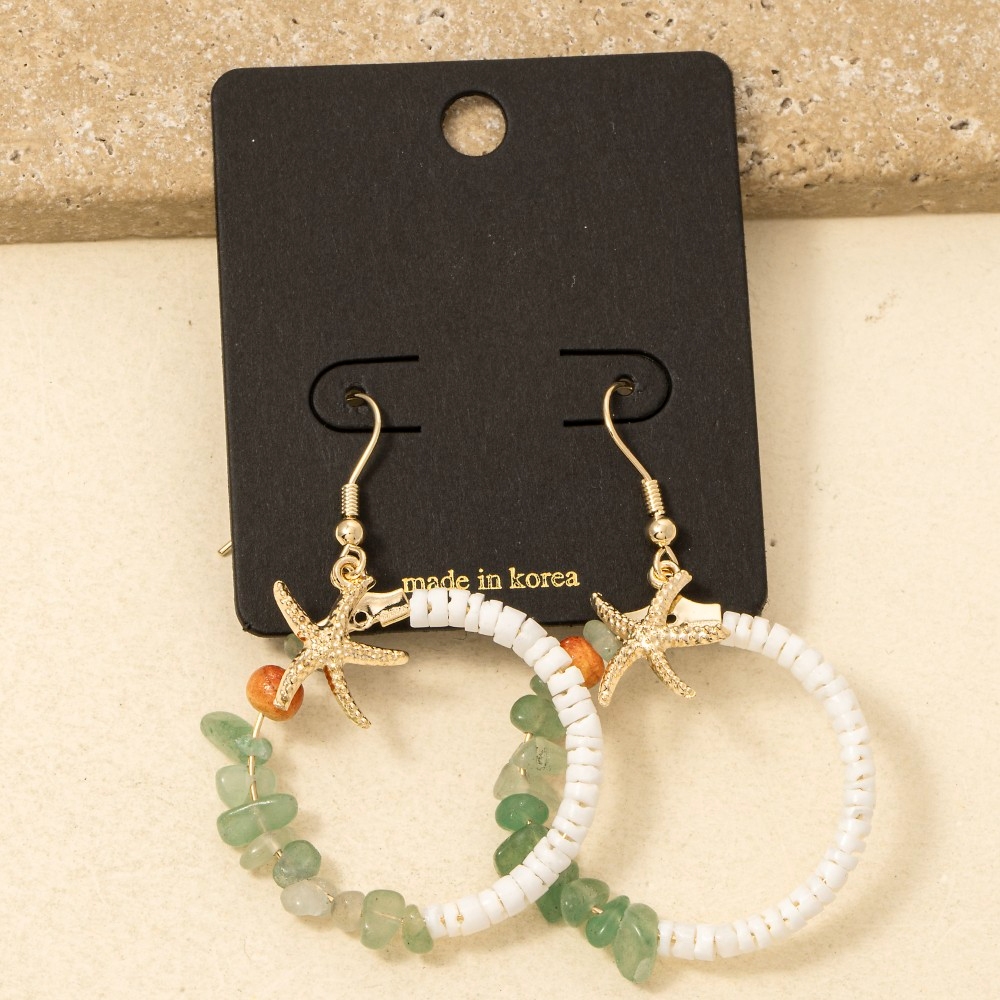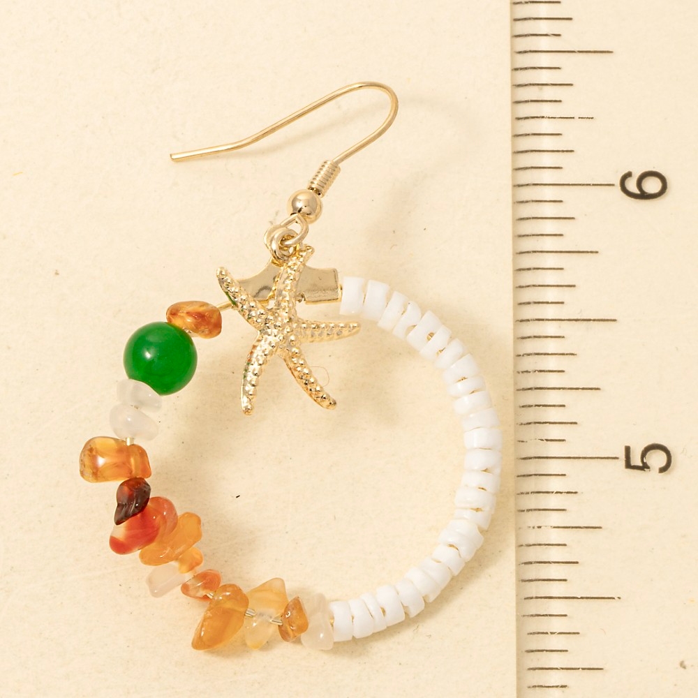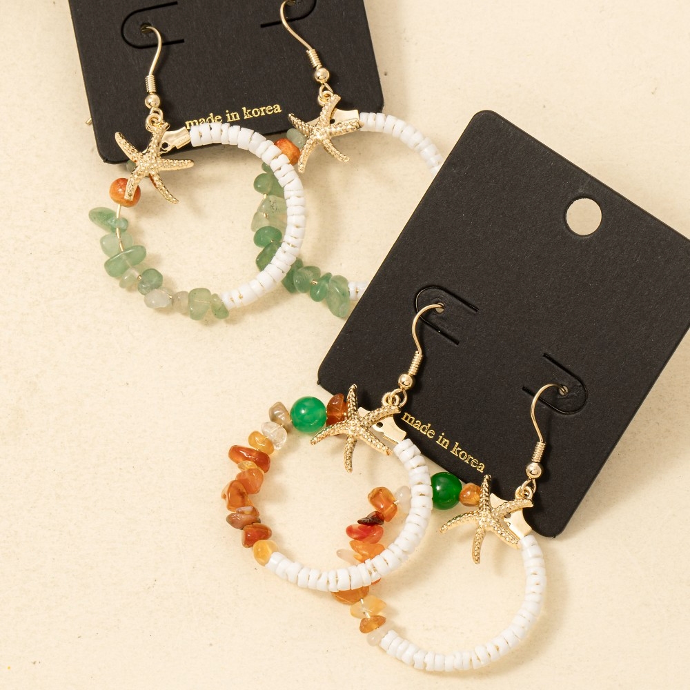• This piece is the perfect way to add some glamour to your look, this pair of drop earrings introduces an exceptional starfish beaded stone circle design. This pair of drop earrings is ideal for both casual and formal events, adding a touch of sophistication to any outfit. Available in BR, GN. This item is sold in packs of 1.