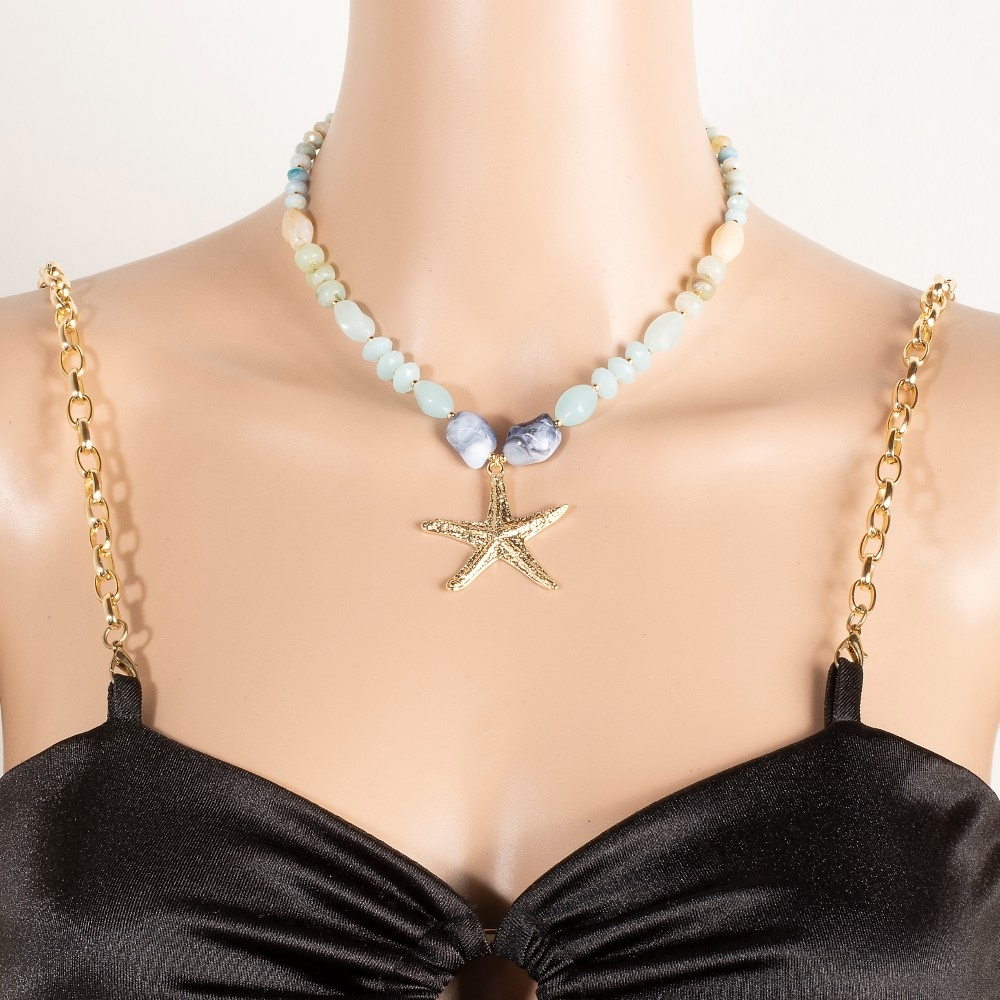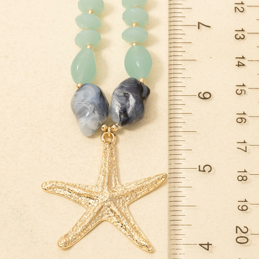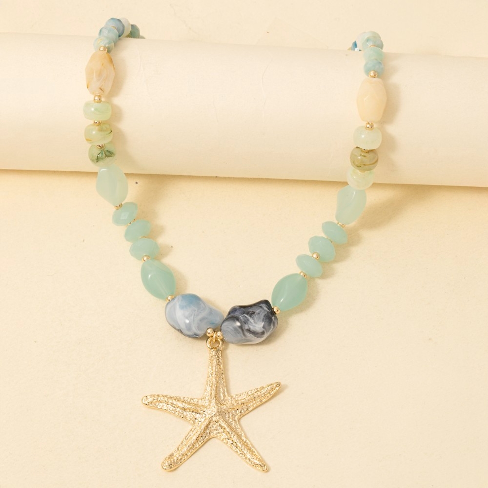 - This piece is a true showstopper, this necklace presents a striking starfish pendant mixed beaded design. Achieve a perfect blend of style and sophistication with this versatile necklace, a fashion-forward choice for any occasion. Available in GMT. This item is sold in packs of 1.