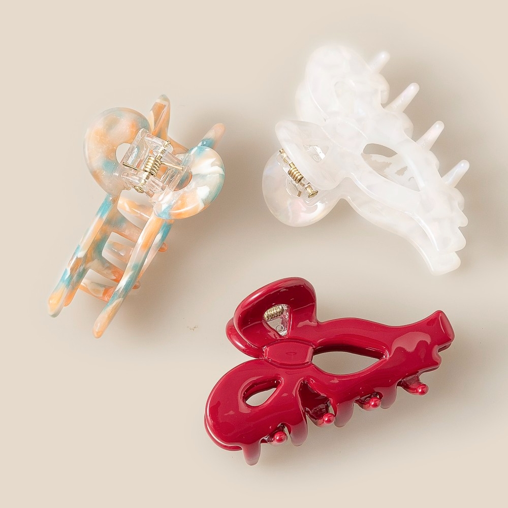 - This season's must-have , this showcases an alluring 3 piece assorted ribbon bow shape hair claw set design. Perfect for adding a touch of glamour and sophistication to any outfit, this is a must-have. Available in MULTI. This item is sold in packs of 1.