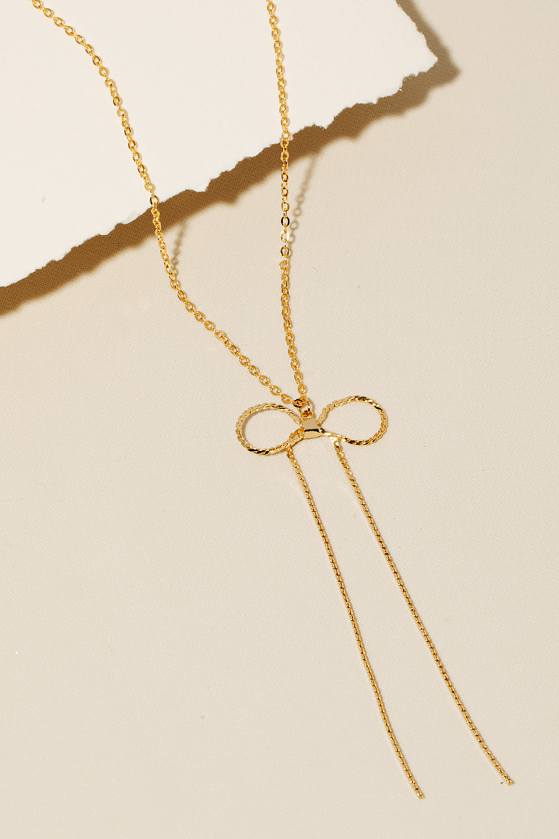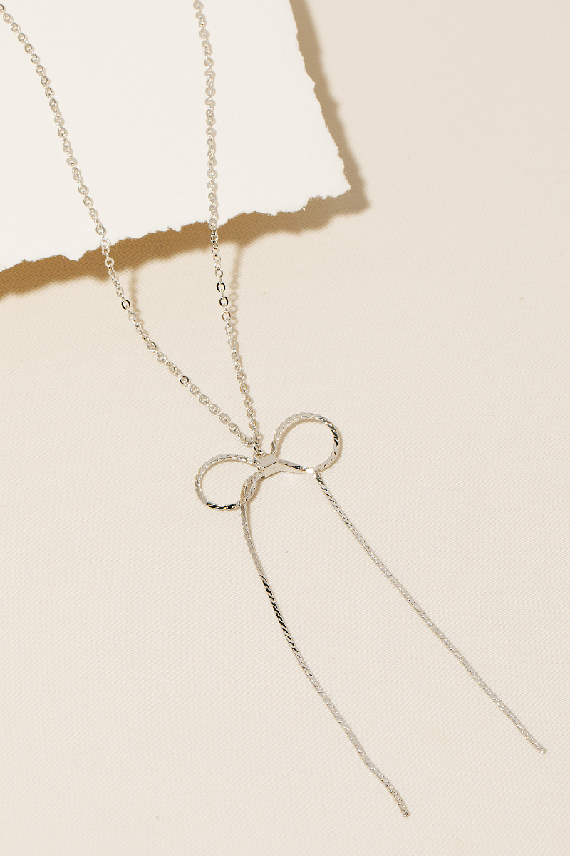 - A classic design with a modern twist, this necklace displays a unique chain ribbon bow pendant design. This accessory is a great way to add some flair to your outfit without going over the top. Available in G and S. This item is sold in packs of 1.