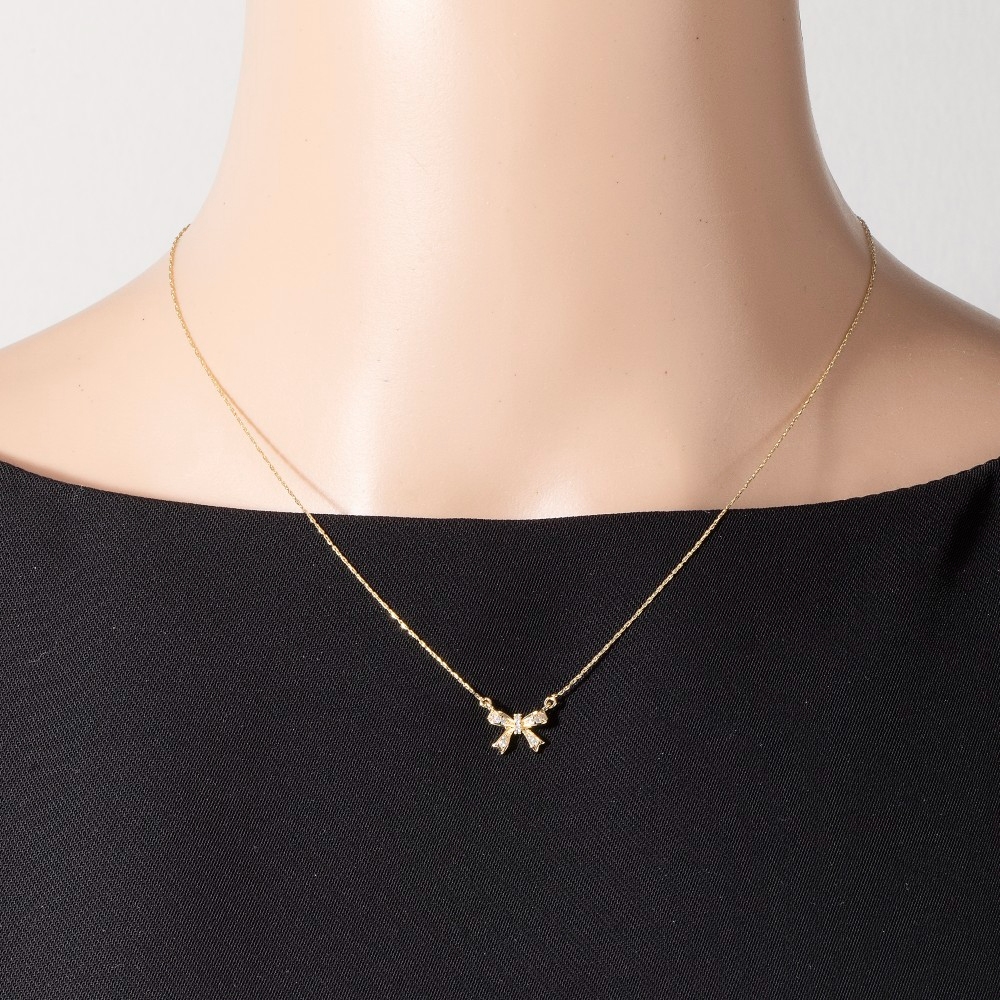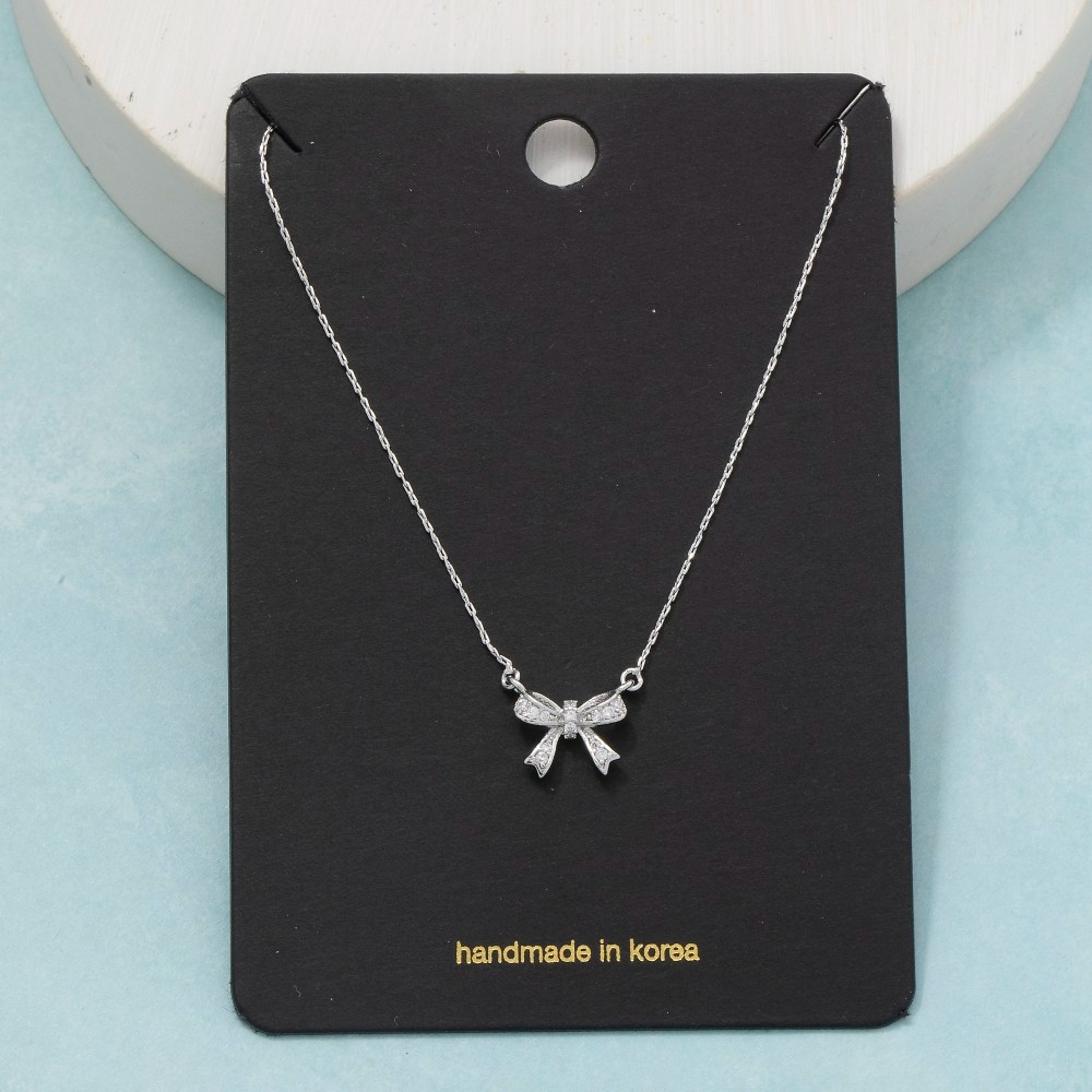 • This piece is both elegant and versatile, this pendant necklace boasts a magnificent cz pave ribbon bow design. This item is perfect for anyone who loves to accessorize and add some personality to their outfits. Available in G, S. This item is sold in packs of 1.