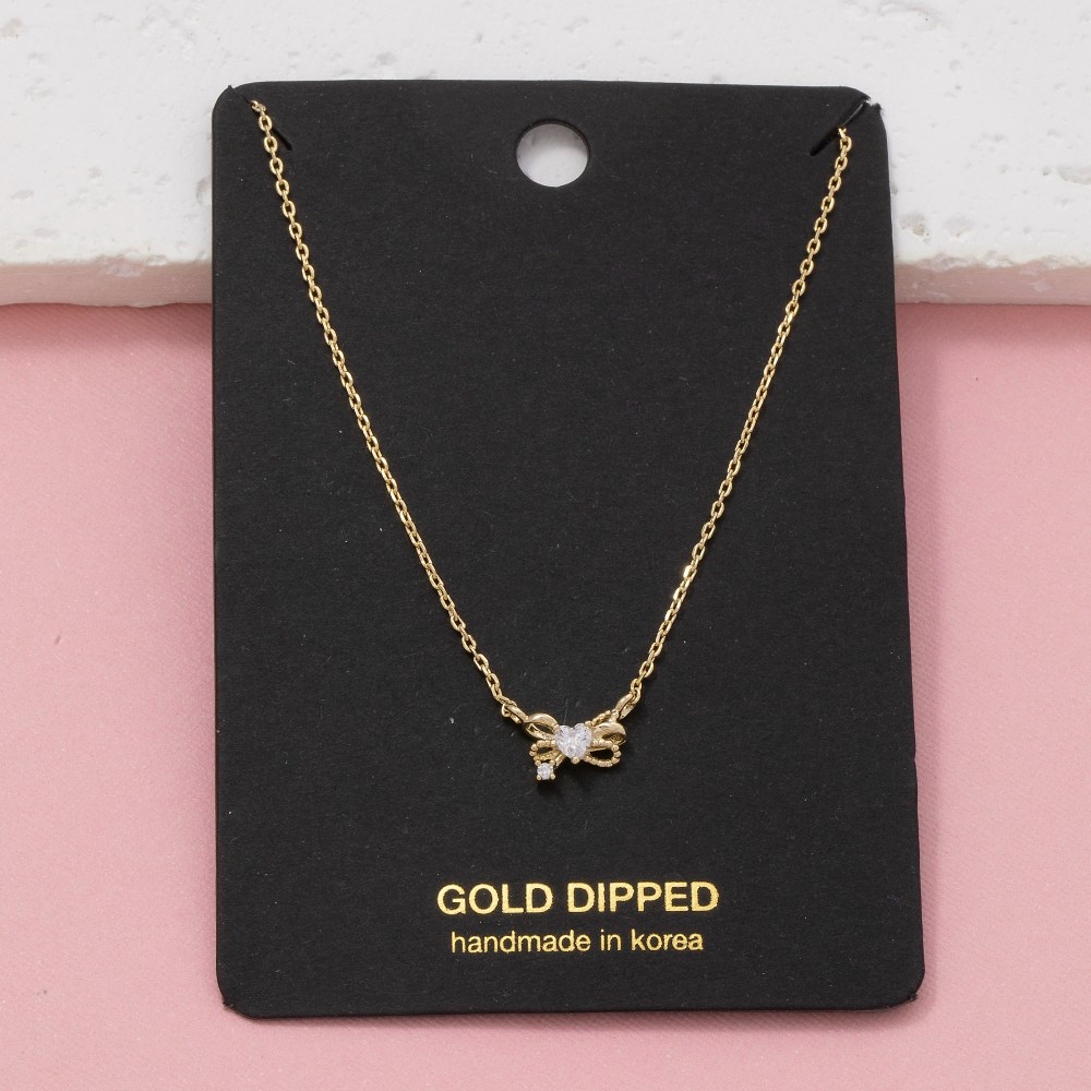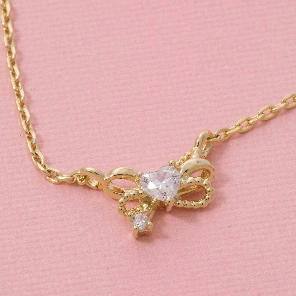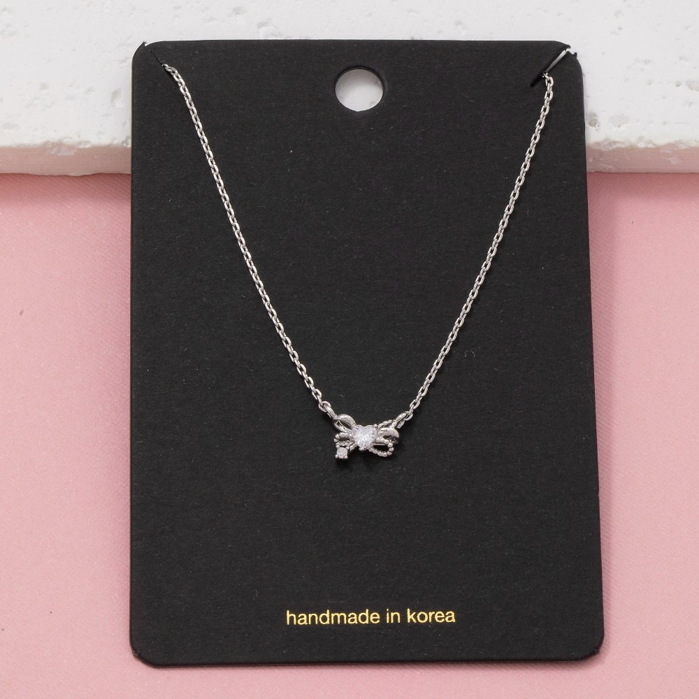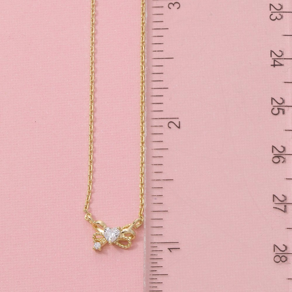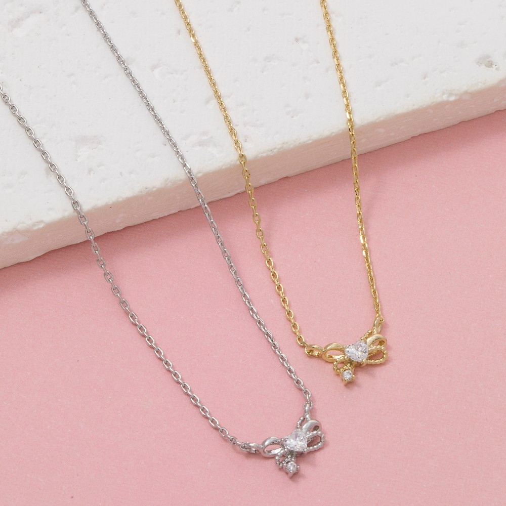 - The perfect way to showcase your unique style, this necklace carries a charming cz ribbon bow pendant design. The perfect way to elevate any outfit, this necklace adds a touch of elegance and style. Available in G, S. This item is sold in packs of 1.