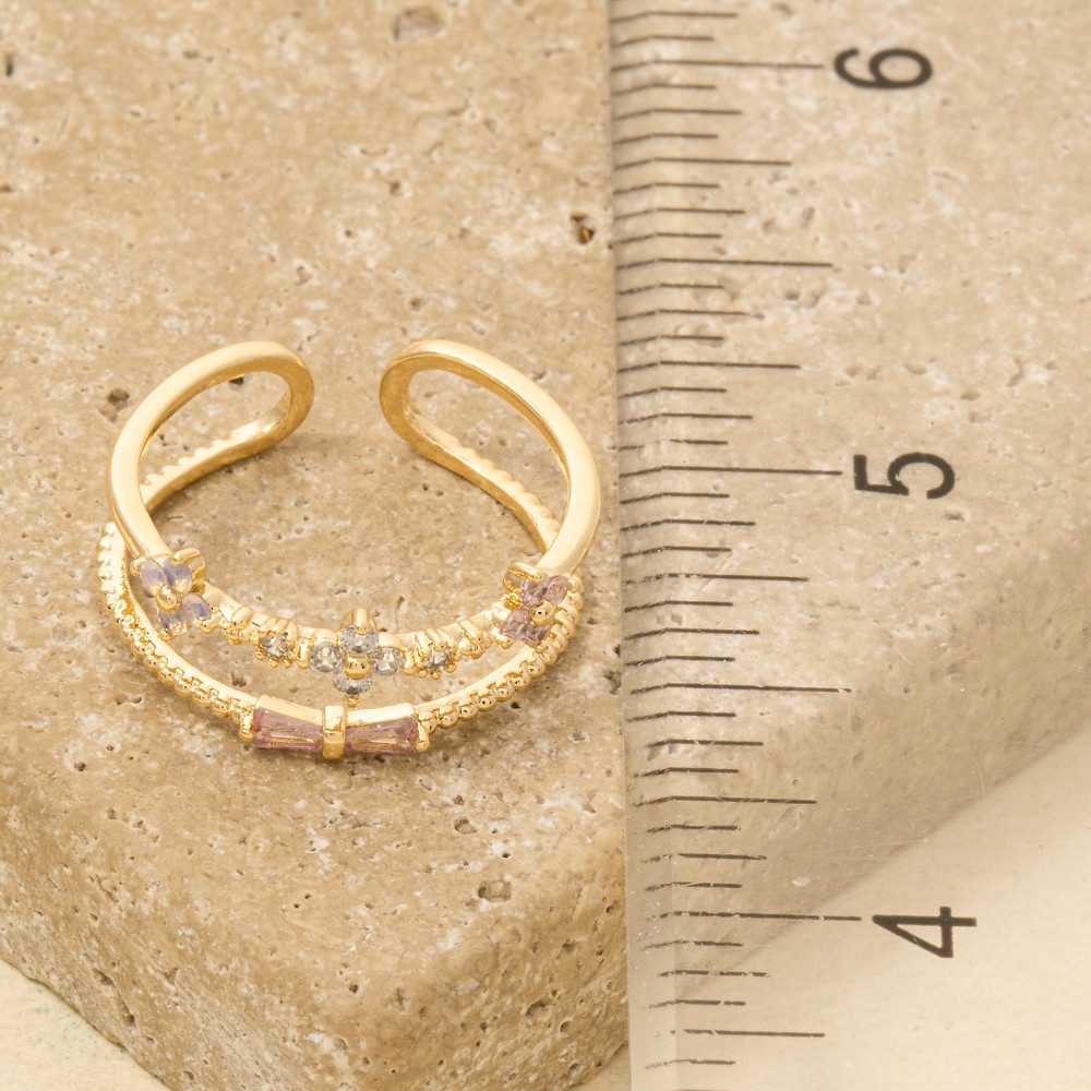 - The perfect way to showcase your unique style, this gold dipped ring radiates a sleek double row gold dipped floral ribbon bow ring design. Elevate your fashion IQ with this versatile gold dipped ring, designed to seamlessly integrate into any style profile. Available in G. This item is sold in packs of 1.