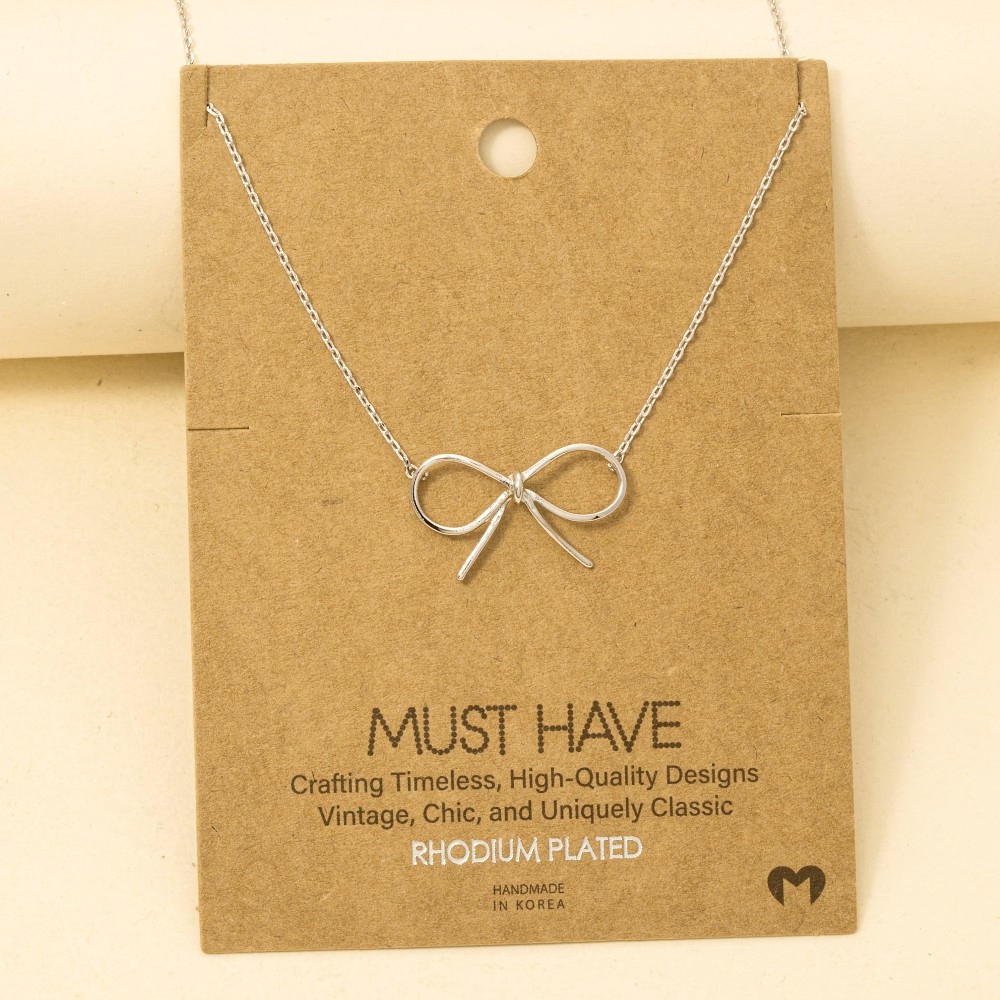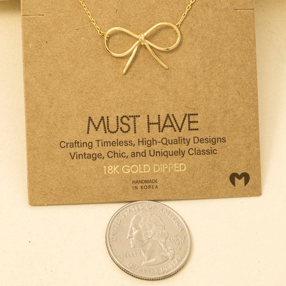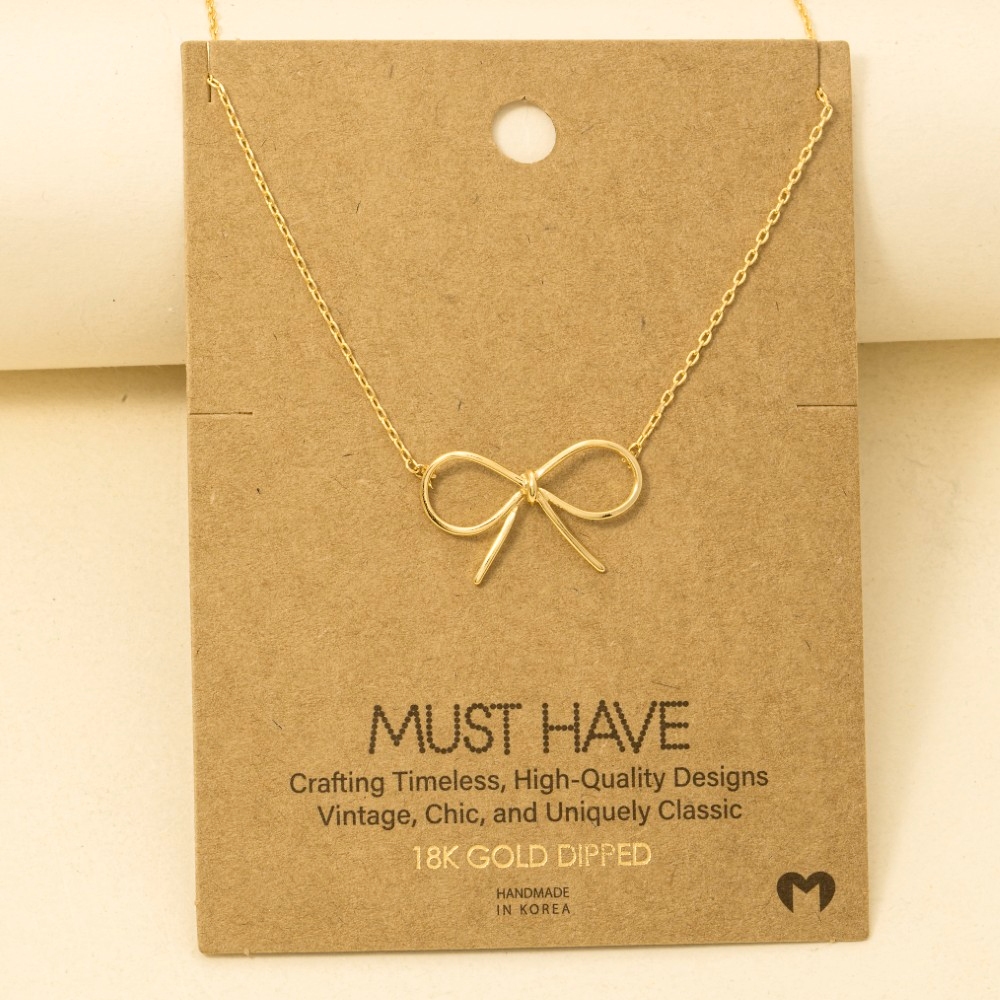 A must-have addition to any trending necklace collection, this trending necklace features a distinct gold dipped bow tie pendant necklace design. Experience the transformative power of this versatile trending necklace, effortlessly enhancing the overall aesthetic of your outfit. Available in G, R, S. This item is sold in packs of 12.