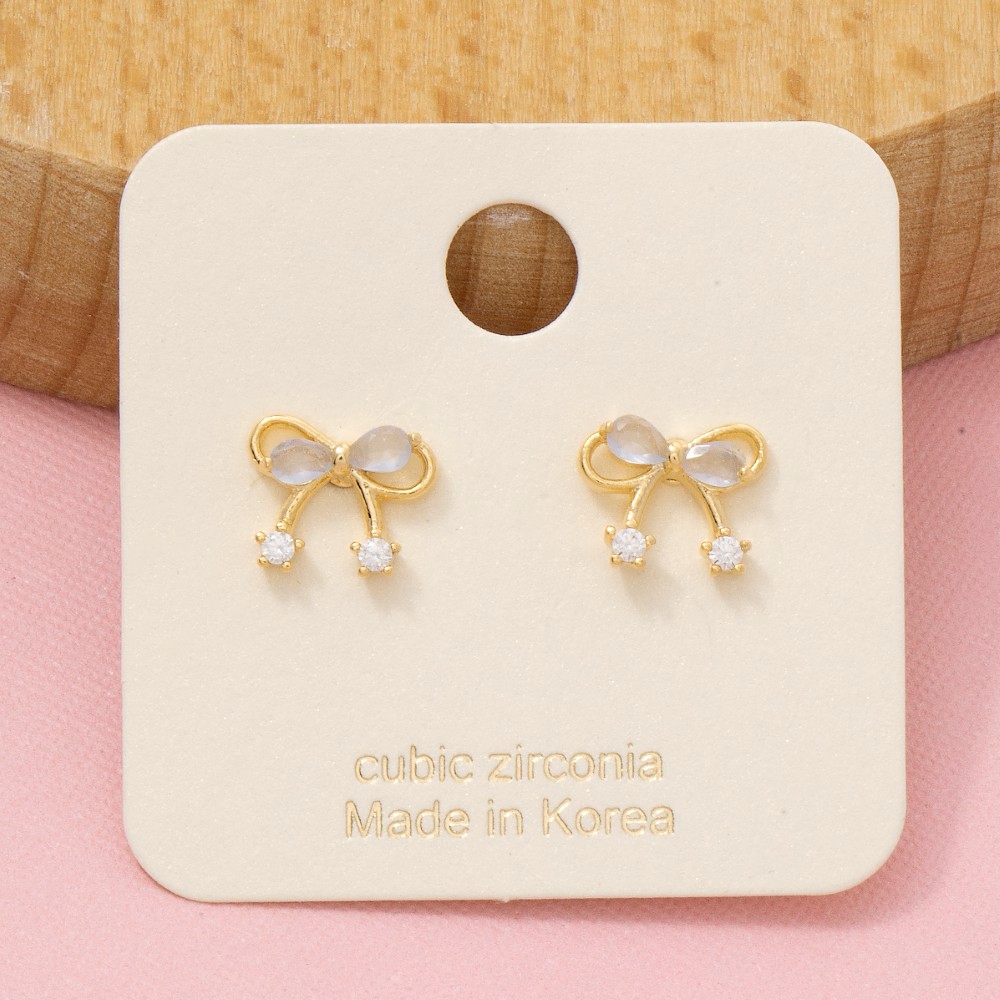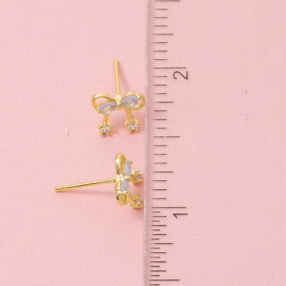 Gold Dipped Cz Pave Bow Ribbon Stud Earrings