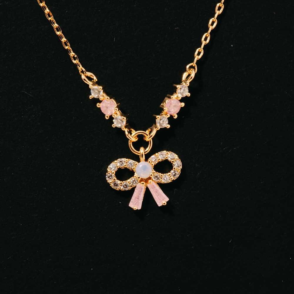 Tear Stone And Rhinestone Bow Pendant Necklace