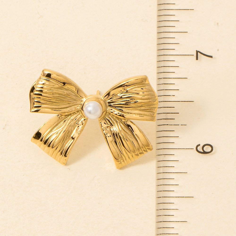 • This pair of stud earrings is featured in our Bow, Gold Dipped Earrings, Pearl Earrings and Stainless Steel Earrings Collection.