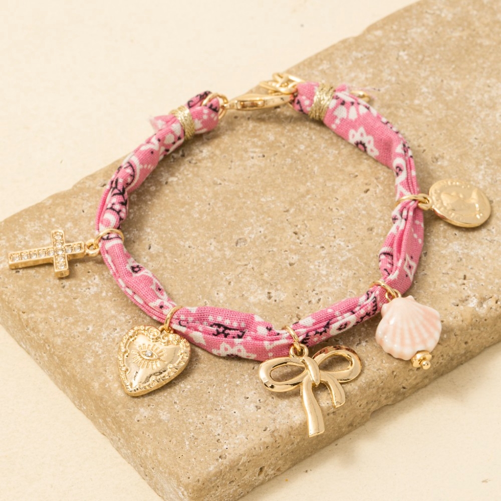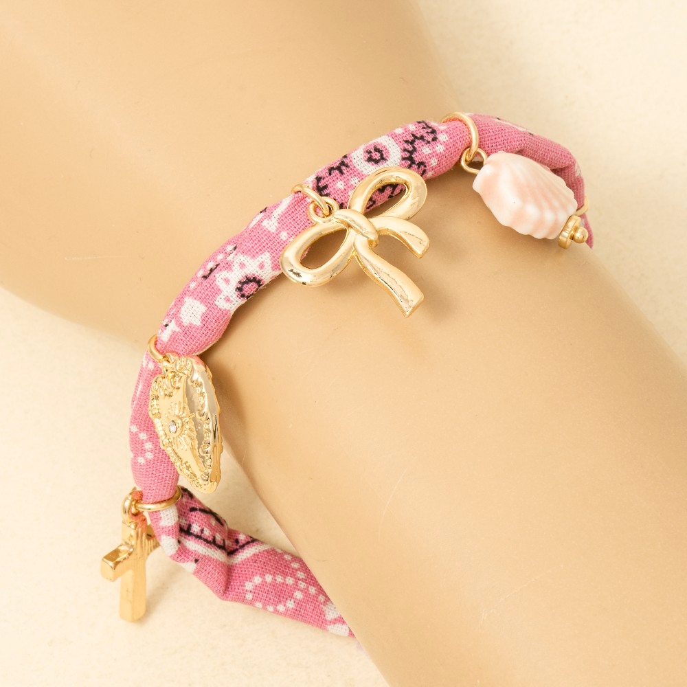 • Effortlessly stylish and always on-trend, this bracelet contains a special heart cross bow and shell charms bandana design. This item is a great way to add some texture and dimension to any outfit. Available in BL, PK. This item is sold in packs of 1.