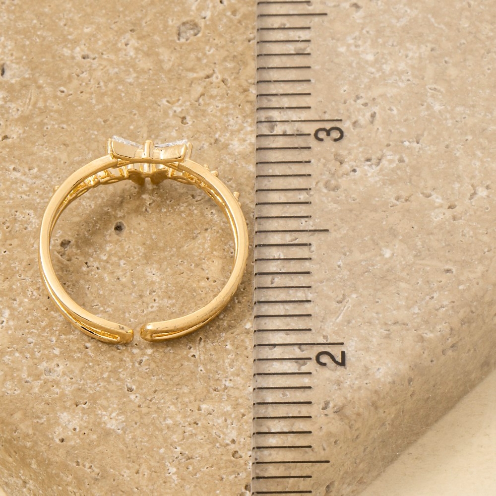 • Effortlessly chic and always on-trend, this ring radiates a sleek gold dipped cubic zirconia ribbon bow design. Elevate your fashion game with this versatile ring, seamlessly integrating into your signature style. Available in G. This item is sold in packs of 1.