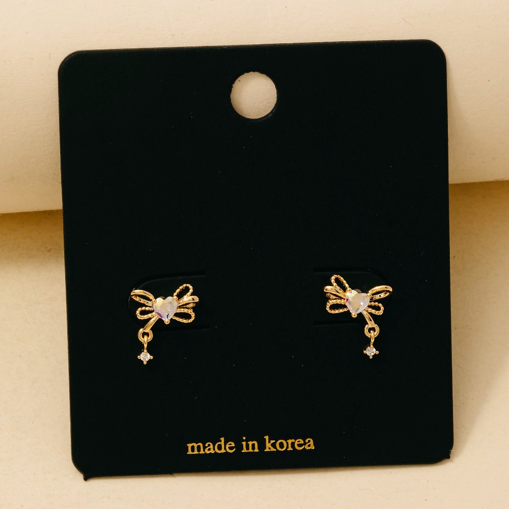 Gold Dipped Cz Mini Ribbon Bow Stud Earrings