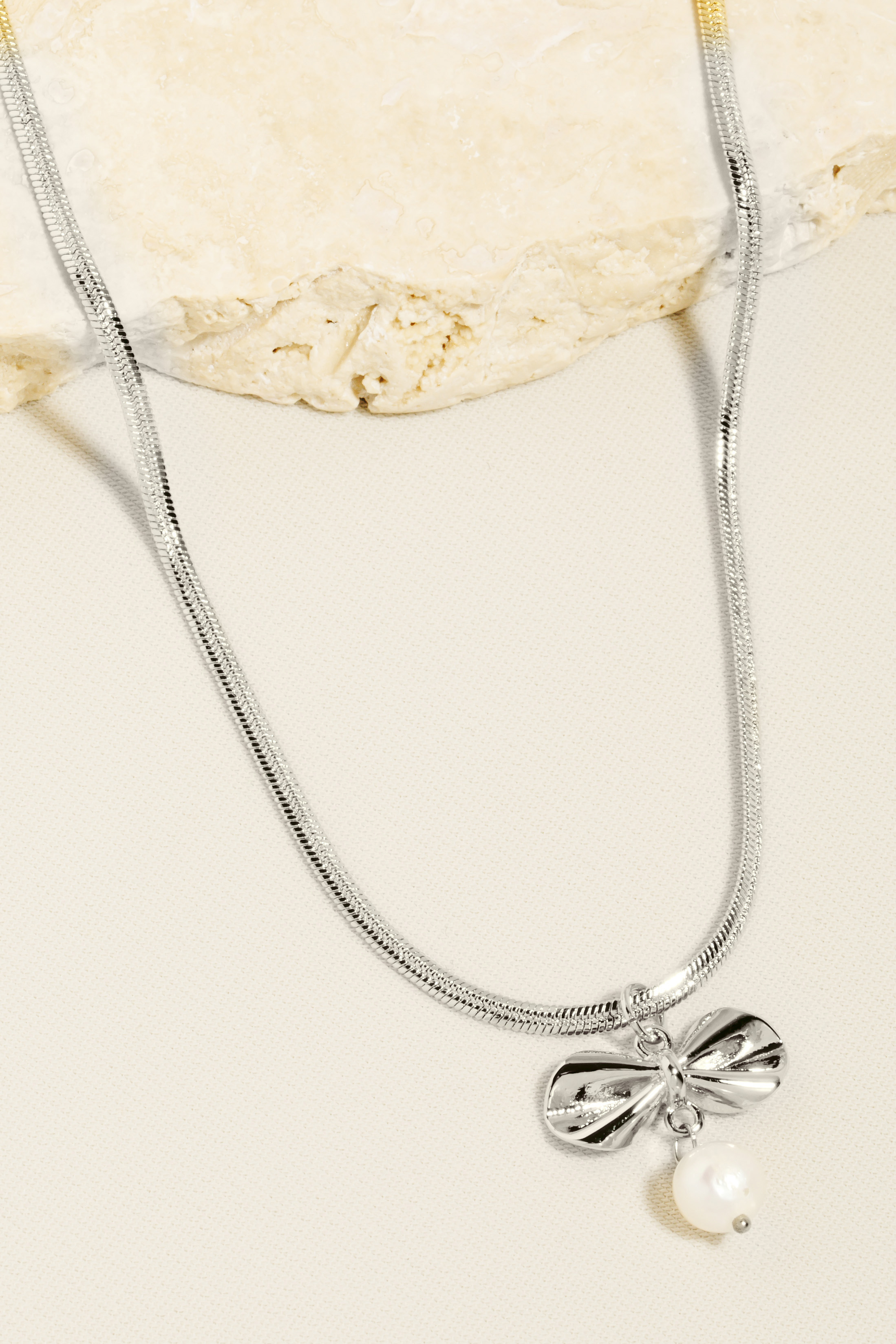 Elevate any look, this chain necklace includes a stunning pearl bead and ribbon pendant design. Achieve a perfect blend of style and sophistication with this versatile accessory, a fashion-forward choice for any occasion. Available in G and S. This item is sold in packs of 1.